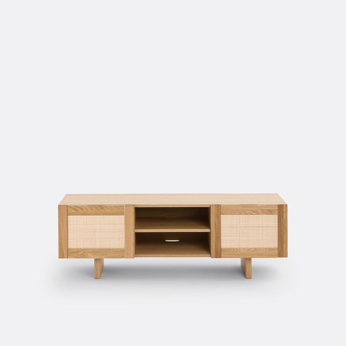 Тумба для ТВ из дуба и плетения Д150 см Arty бежевый