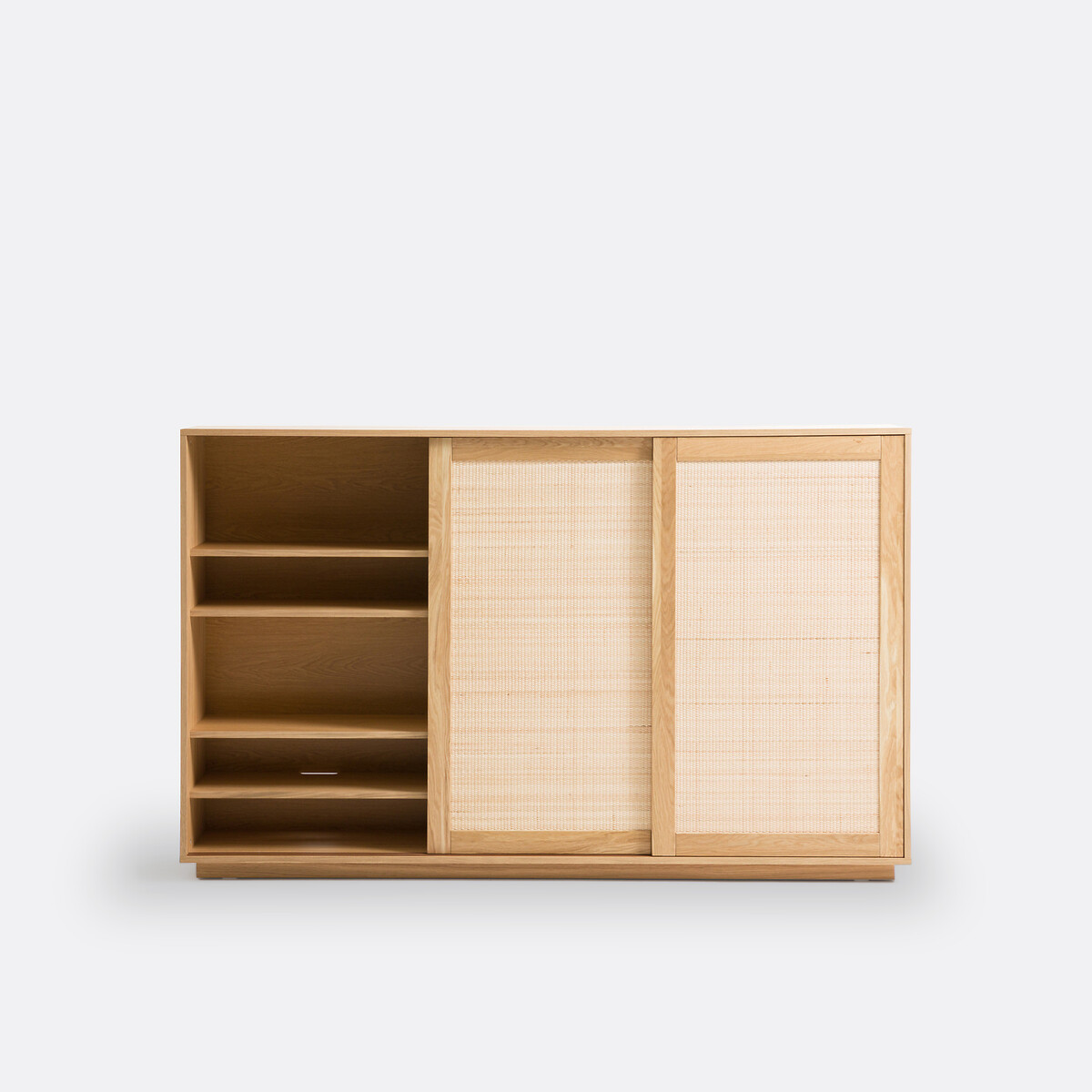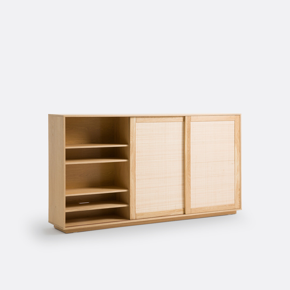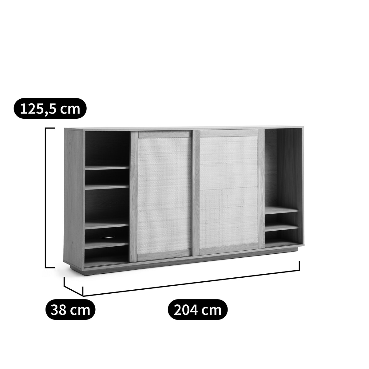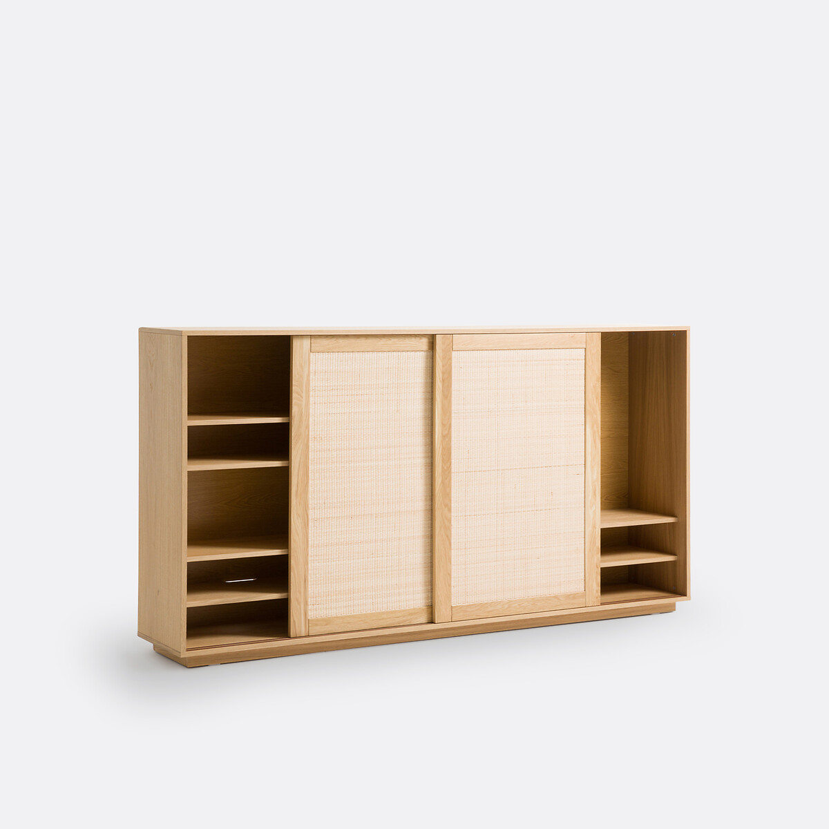 • 2 раздвижные дверцы, декорированные тростниковым плетением в рамках из массива дуба