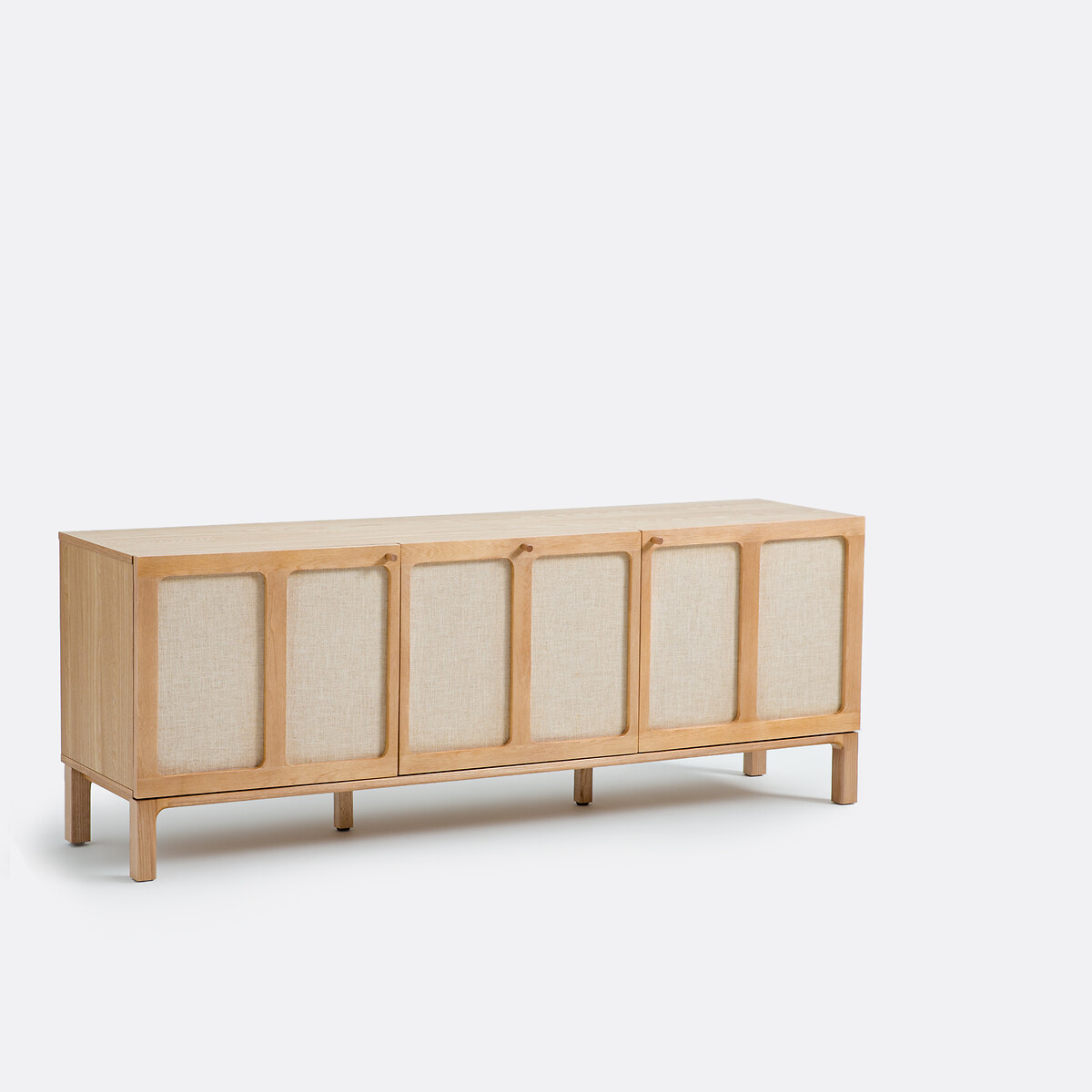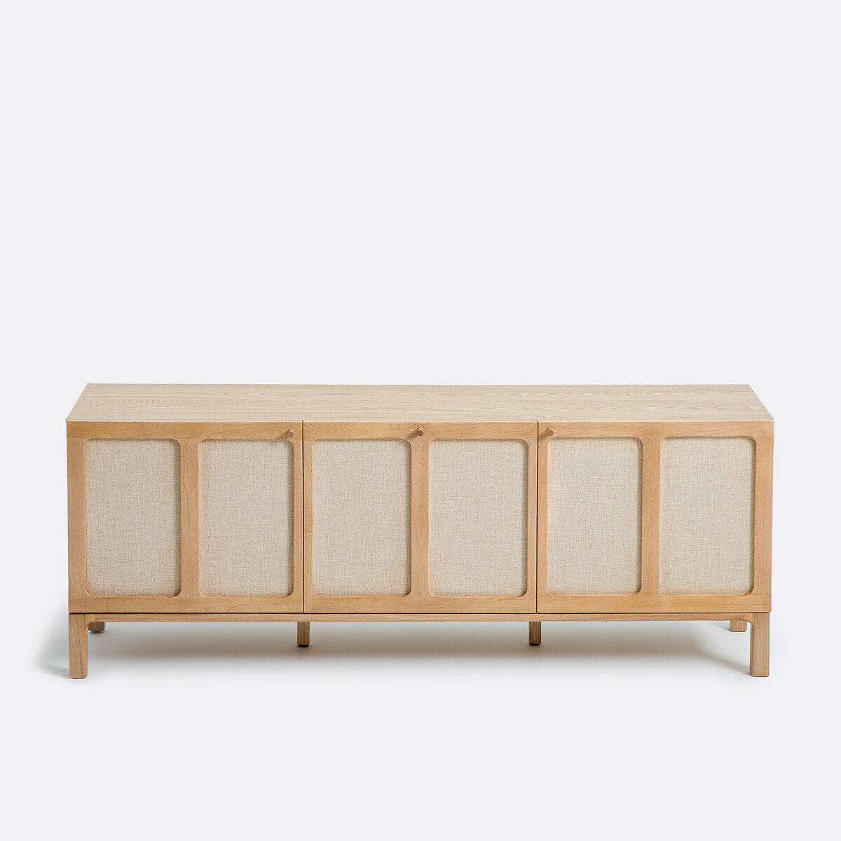 Тумба под ТВ и оборудование hifi из ясеня и льна Esmara каштановый