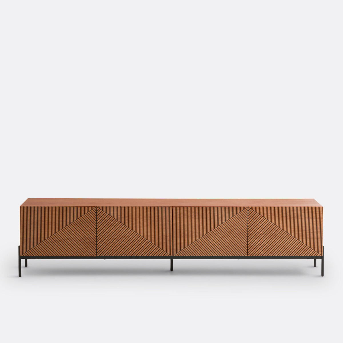 Запросить индивидуальное предложение"Создавая тумбу под телевизор Lodge, я хотела объединить винтажное наследие с этническими мотивами, в частности с резным деревом. Филигранный узор придает изделию ритм и графичность."