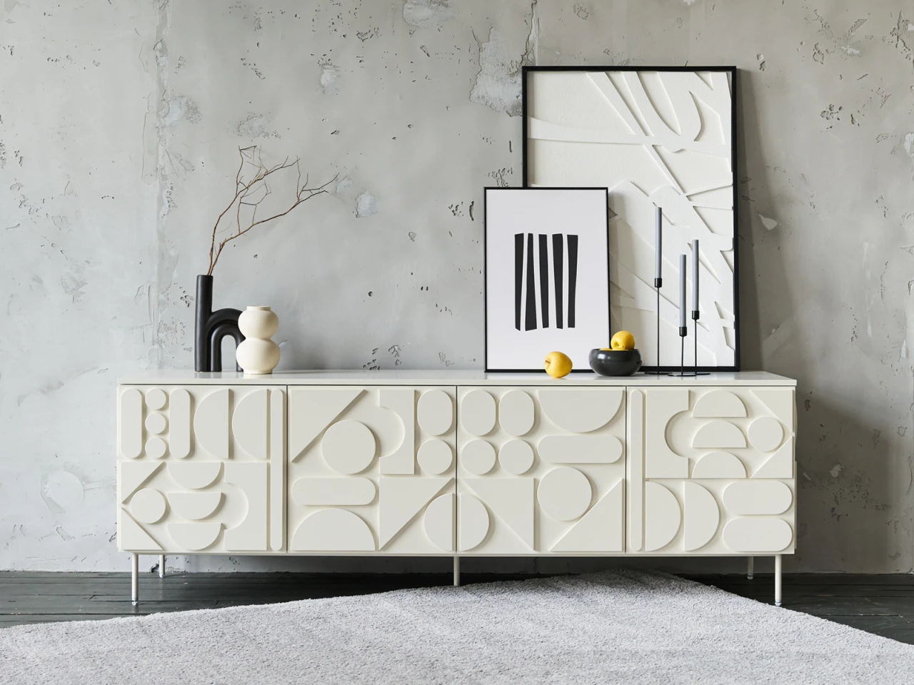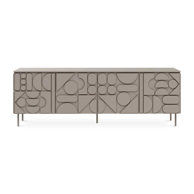 Запросить индивидуальное предложениеMilton — линейка корпусной мебели для хранения с динамичным характером. Яркой чертой дизайна являются геометрические фигуры, закреплённые на фасадах и боковых стенках. Они придают изделиям рельефность, оригинальность, выразительность. Серванты, комоды, тумбы напоминают объёмные 3-D головоломки. Архитектура которых строится на комплиментарности контрастов. Колоритный «верх» балансирует на изящных ножках из металла. Фасады без ручек открываются с помощью механизма «нажал-открыл».
