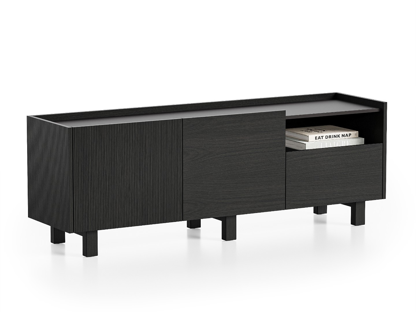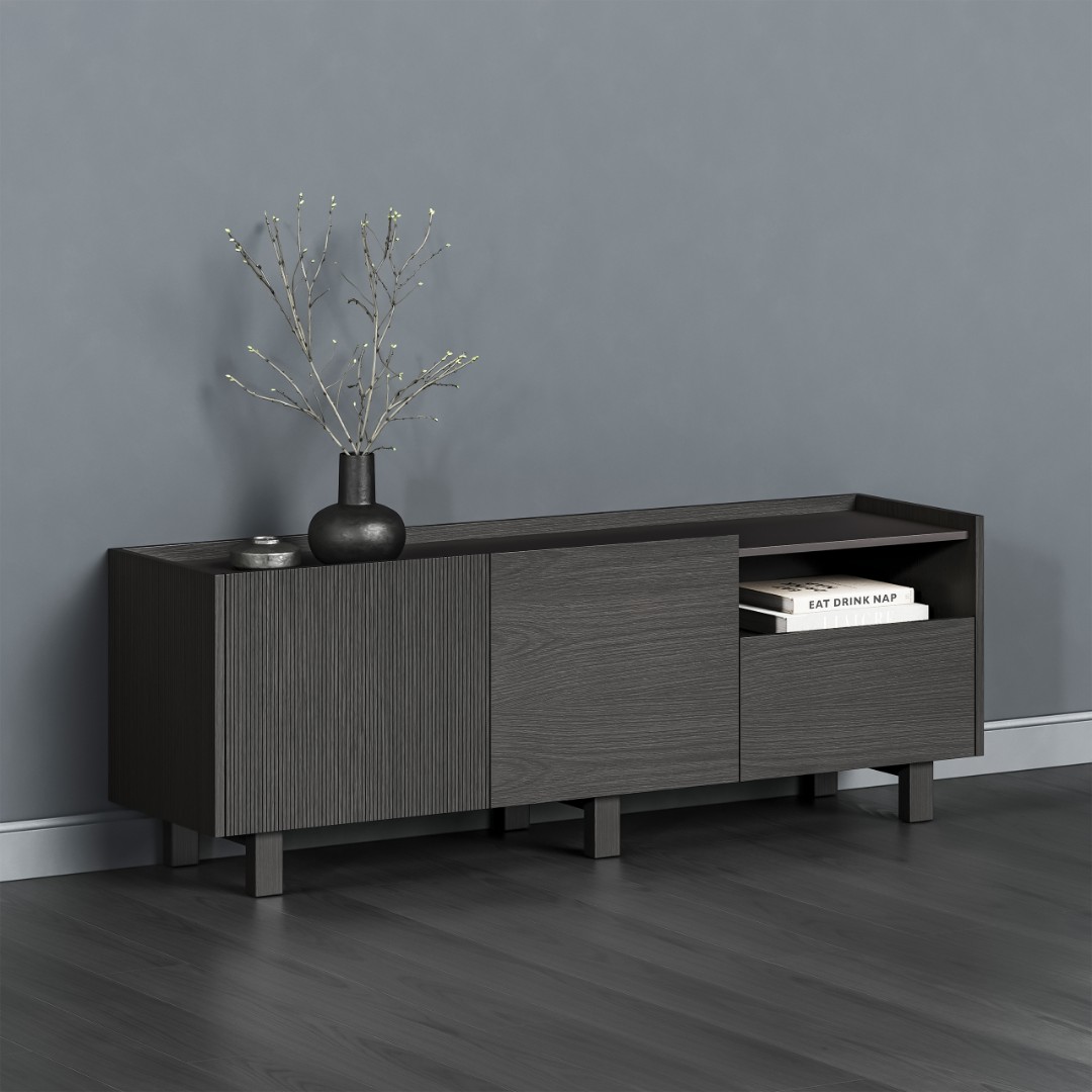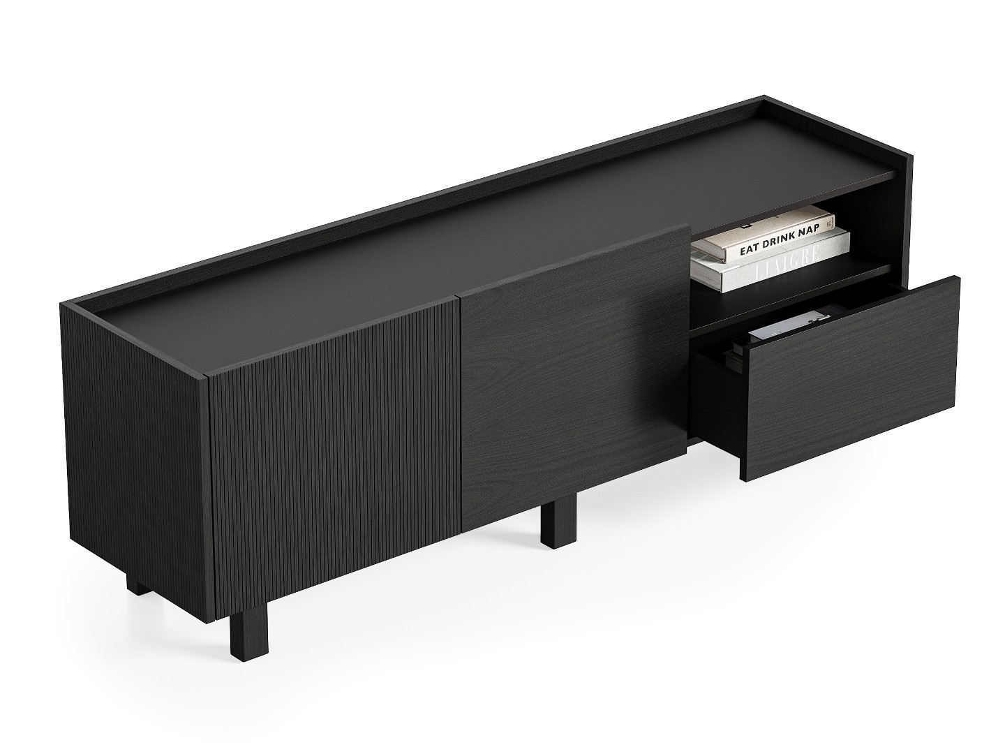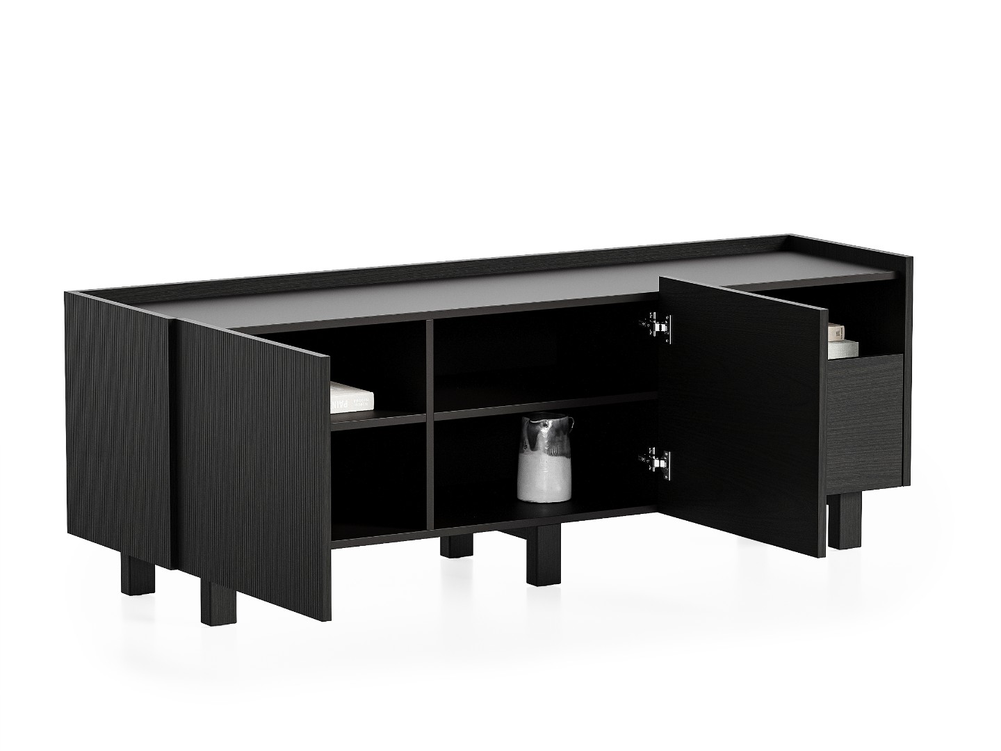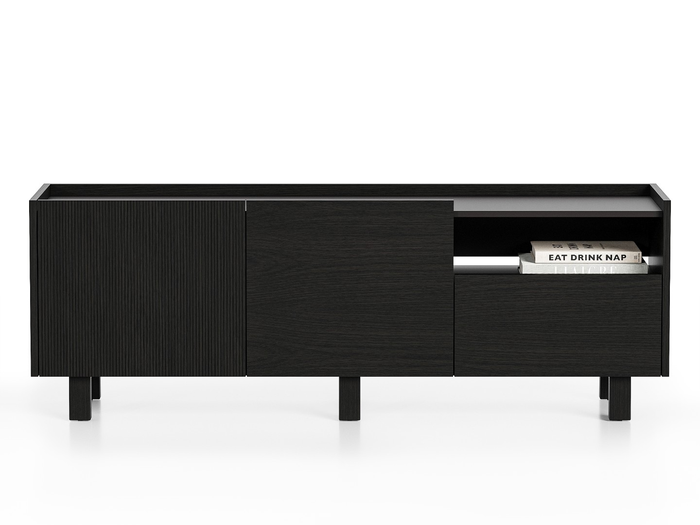 Благодаря дизайну, основанному на лаконичности и универсальности, тумба под ТВ удачно впишется практически в любой интерьер. Вертикальная фрезеровка на фасадах и боковинах добавляет TV тумбе визуального объема и делает ее украшением любого интерьера.