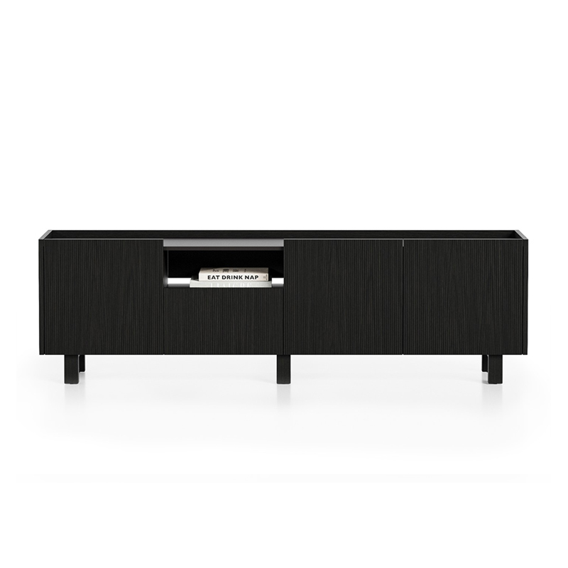 Благодаря дизайну, основанному на лаконичности и универсальности, тумба под ТВ удачно впишется практически в любой интерьер. Вертикальная фрезеровка на фасадах и боковинах добавляет TV тумбе визуального объема и делает ее украшением любого интерьера.