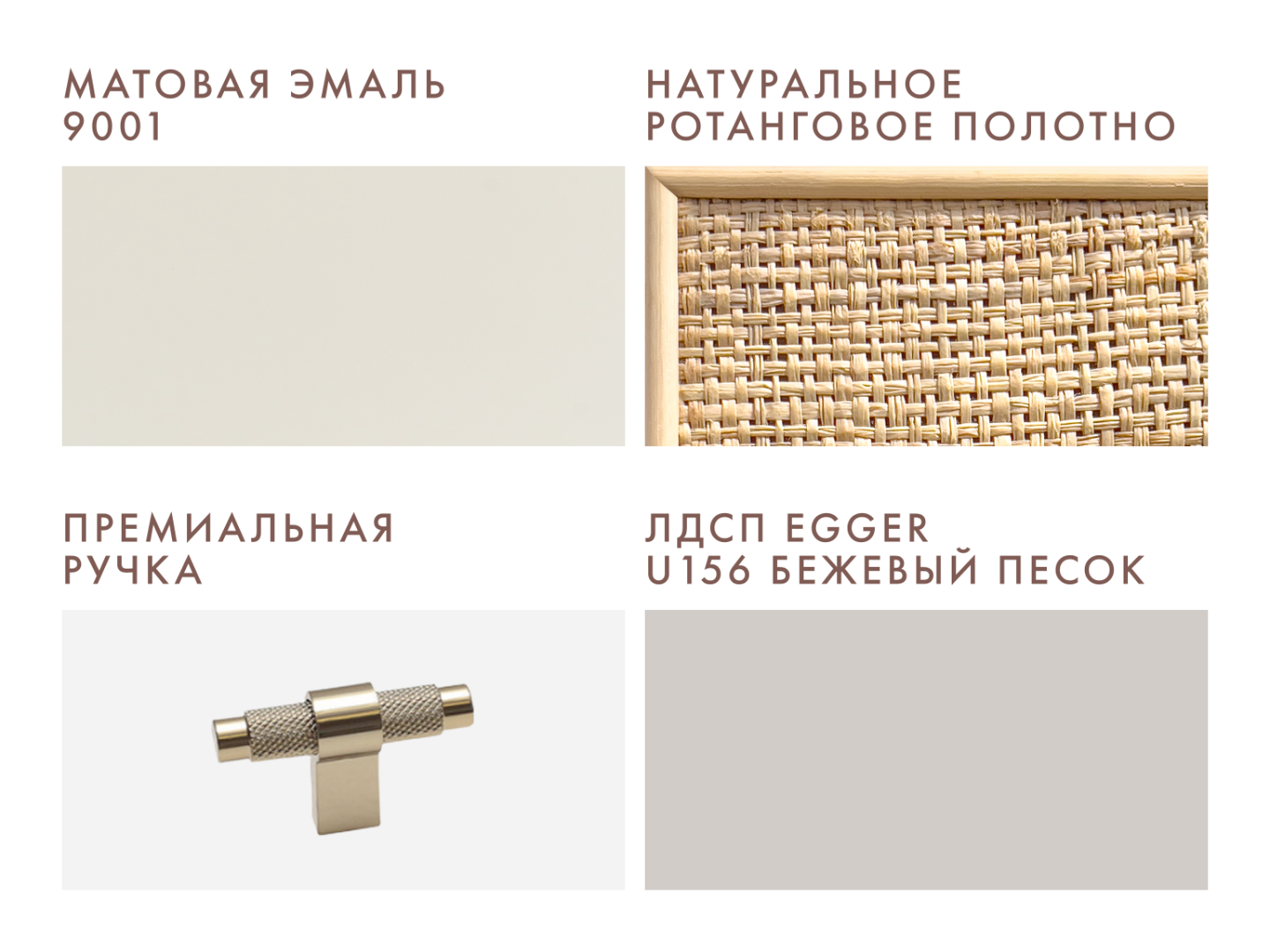 В основе дизайна коллекции Vishera – оригинальный фасадный декор, выполненный из натурального ротангового полотна. Естественная плетеная фактура ротанга придает мебели легкое очарование, свойственное традиционным ремесленным техникам, а природные текстуры и натуральные оттенки отделки создают неповторимую гармонию, теплоту и уют. Коллекция Vishera - это гармония натуральных текстур, легкости и мягкого минимализма. Мебель из коллекции органично дополнит ваш интерьер, будь то скандинавский стиль, soft-minimal, japandi или даже бохо.