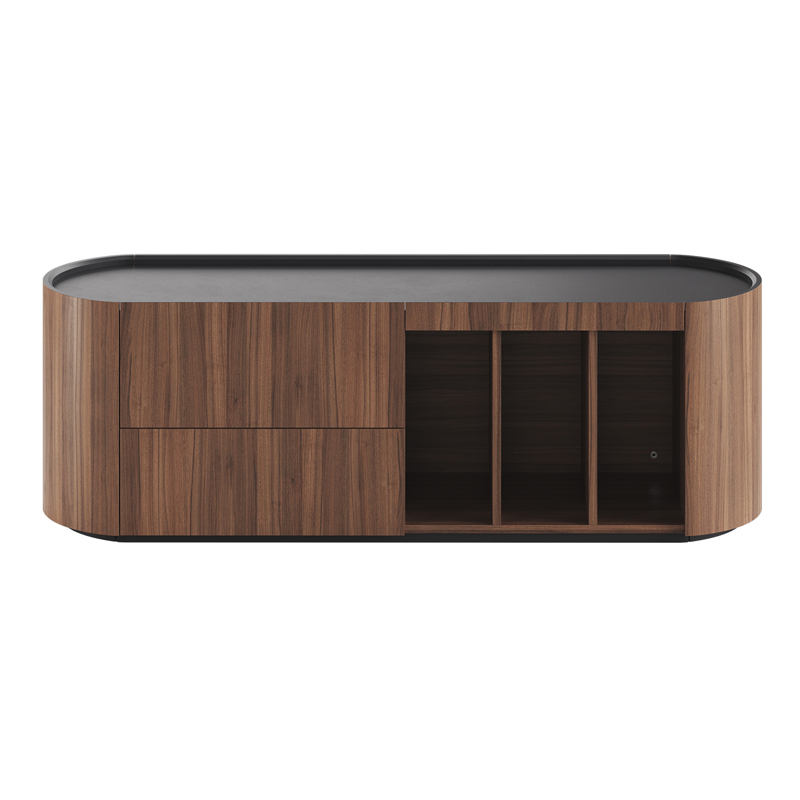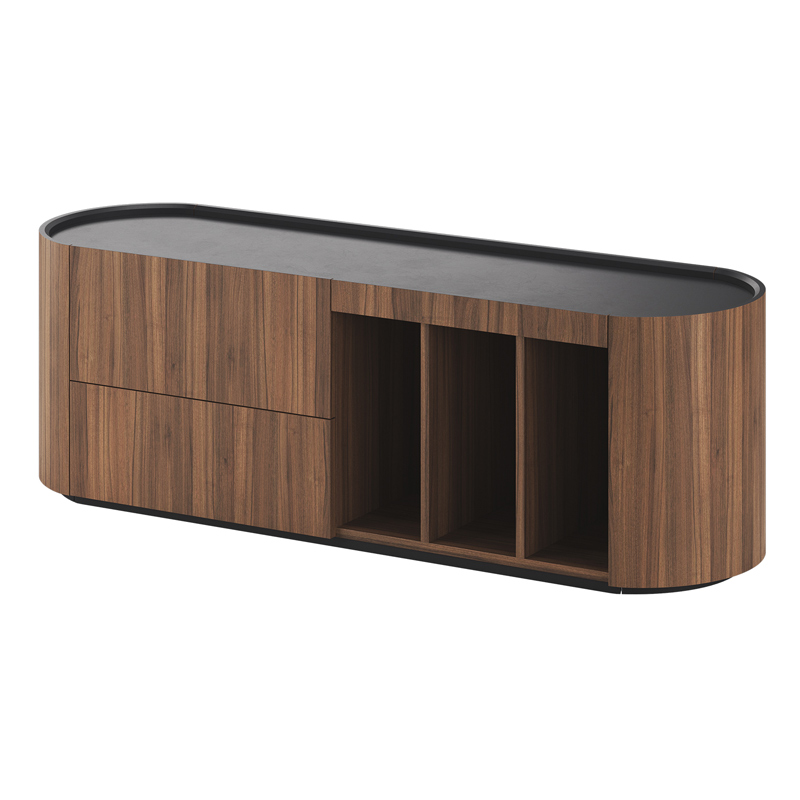 Тумба Lagom под ТВ 2 ящика 3 ниши ширина 140 см (орех, черный)