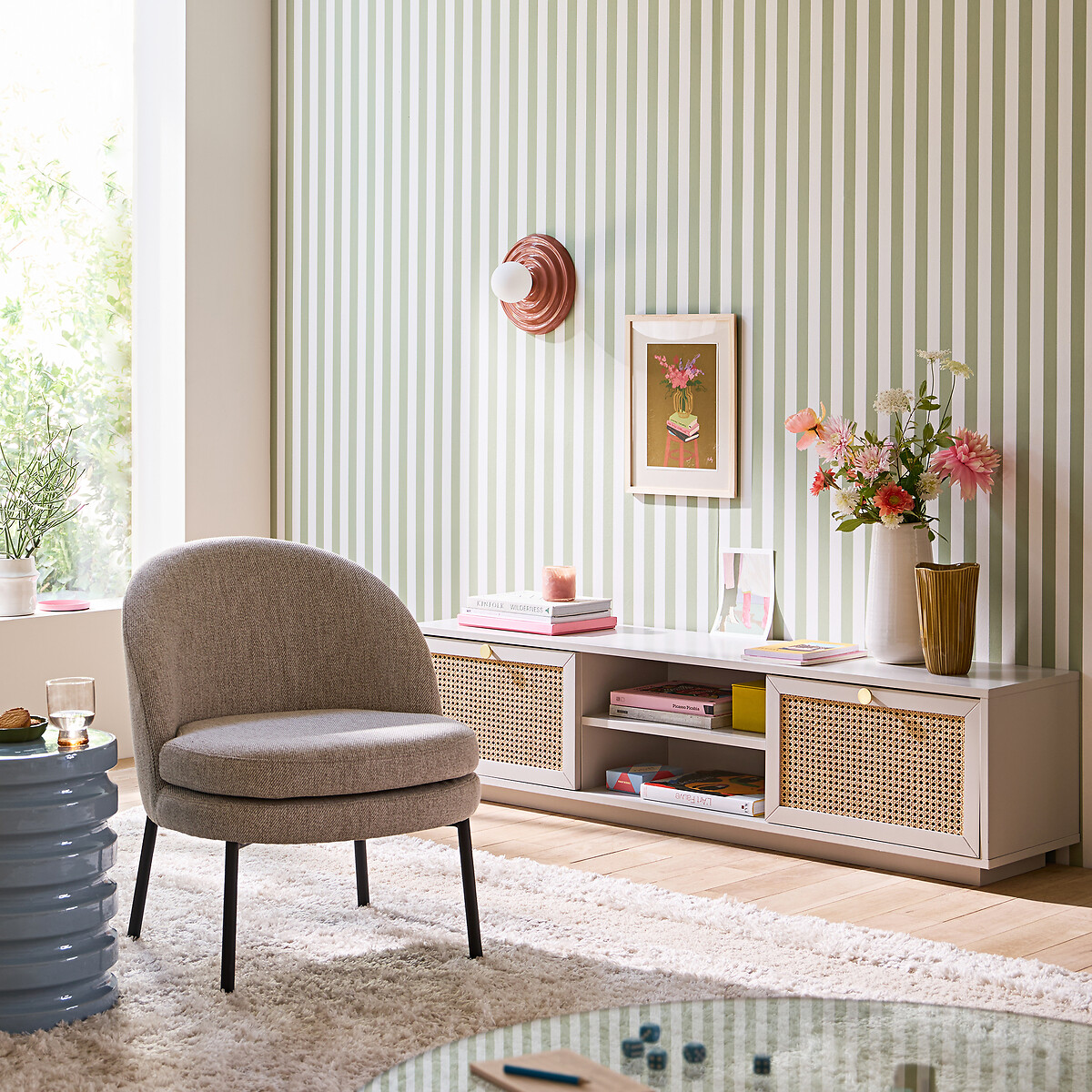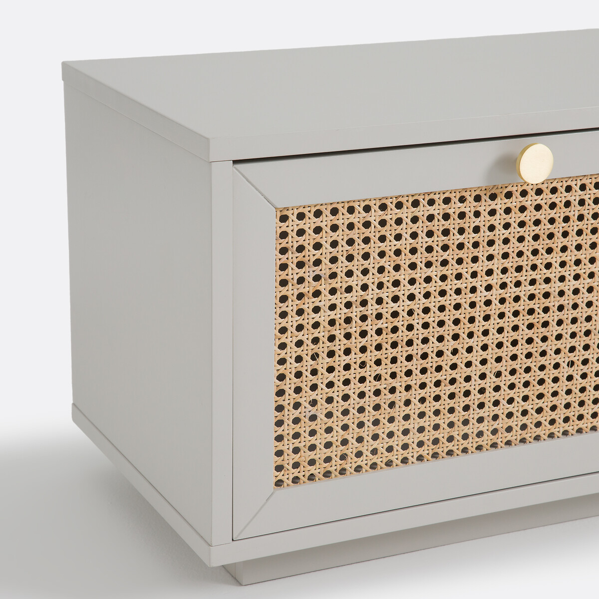 • Распашные дверцы из МДФ и тонированной в серый покрытой лаком сосны и плетеного ротангового полона с покрытием краской на водной основе натурального цвета
