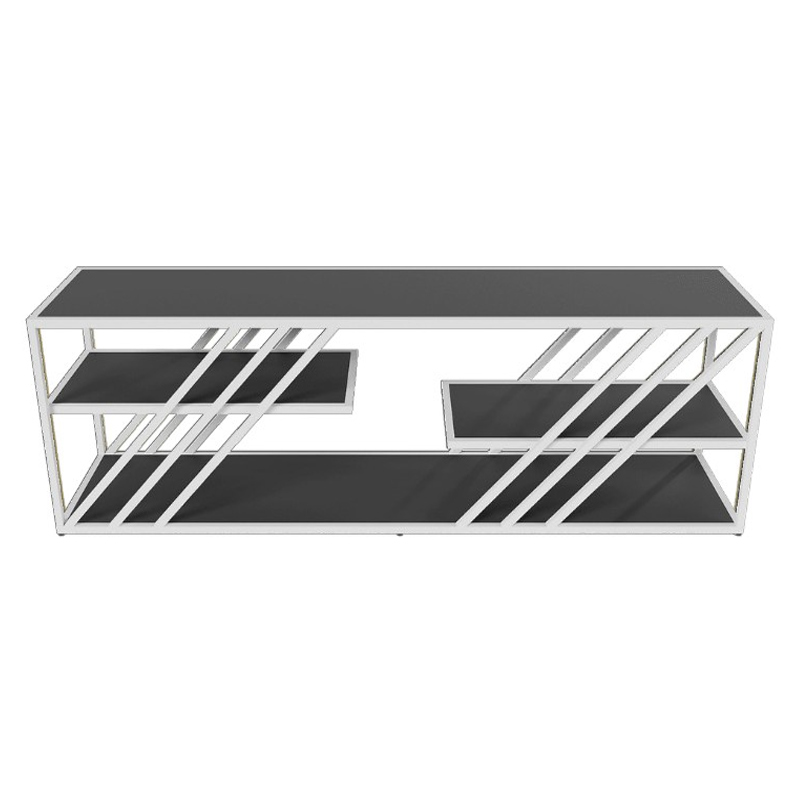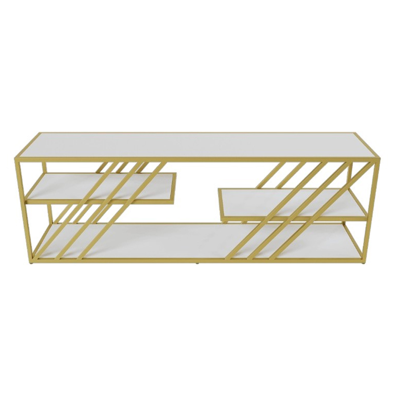 Запросить индивидуальное предложениеДизайнерская тумба LATTISO сочетает элегантность и функциональность, делая интерьер одновременно стильным и практичным. Универсальная конструкция подходит для разных помещений: она может служить подставкой под телевизор или выступать декоративным элементом. Особый шарм тумбе придаёт сочетание привлекательного внешнего вида и качественных материалов: металлическое подстолье с двойным порошковым покрытием защищено от коррозии и механических повреждений, обладает гладкой поверхностью и высокой износостойкостью. Цветовая палитра — золото, чёрный и белый — легко вписывается в любой интерьер.