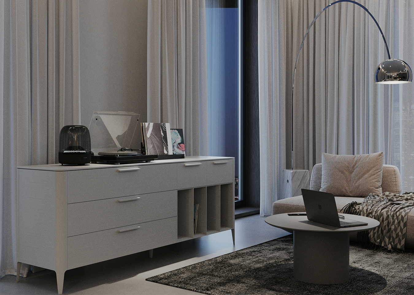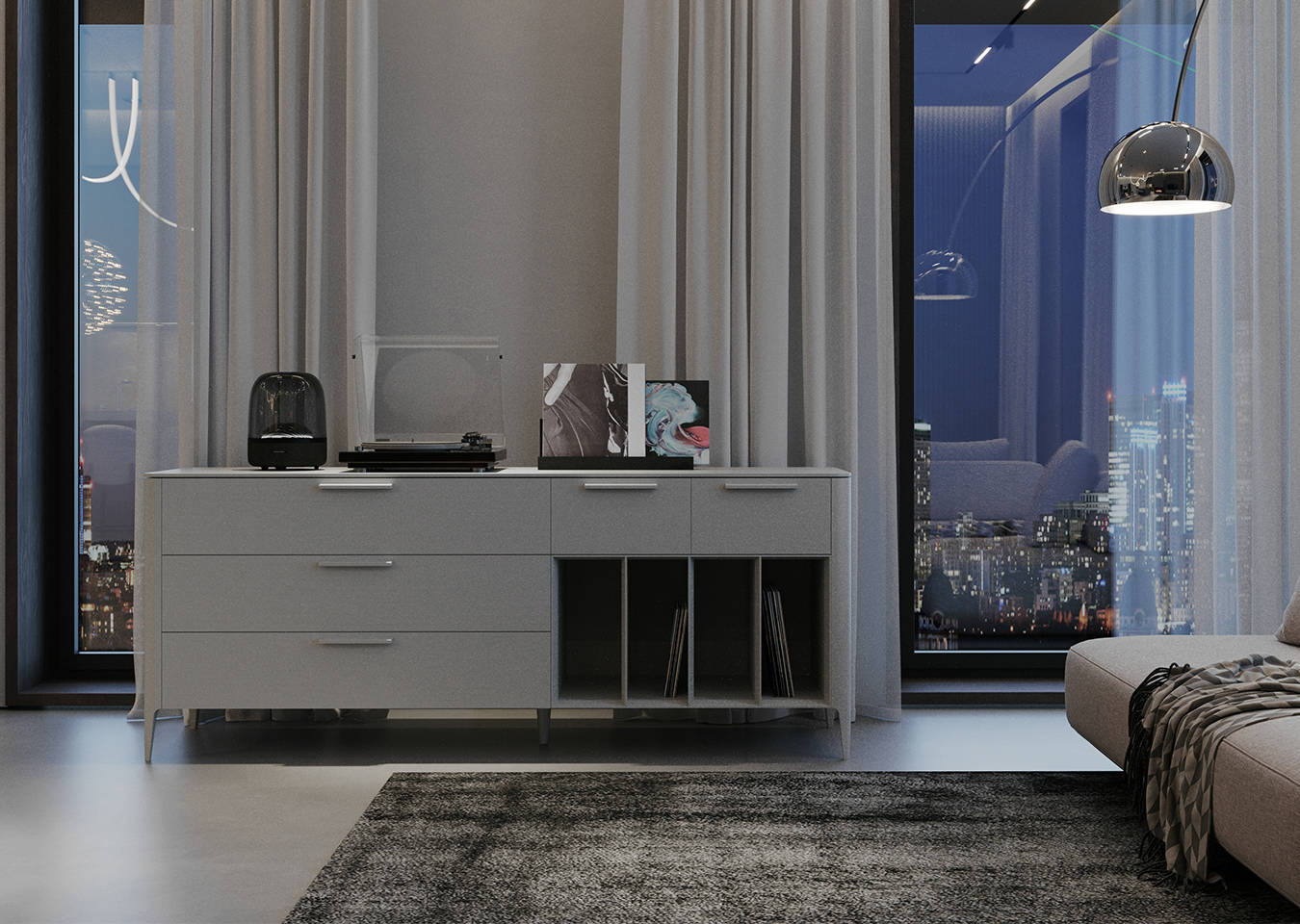 Тумба Type oak 5 ящиков 4 полки ширина 200 см (молочный)