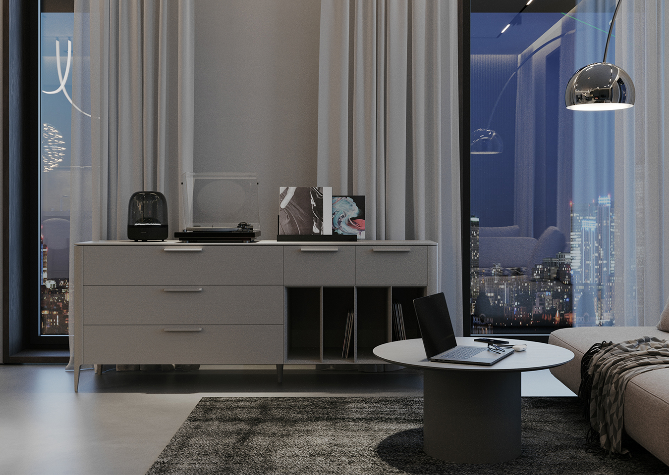 Тумба Type oak 5 ящиков 4 полки ширина 200 см (серо-бежевый)