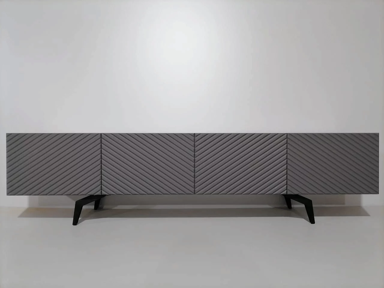 Запросить индивидуальное предложениеНравится атмосфера ненавязчивой роскоши? Цените уют? Тогда ТВ тумба Диагональ - тумба вашей мечты. Органично впишется в современный интерьер гостиной или комнаты, вместит в себя большое количество вещей и будет радовать вас долгие годы. А если вы желаете добавить вашей комнате воздушности - откажитесь от опор и мы доставим тумбу в подвесном варианте.