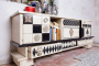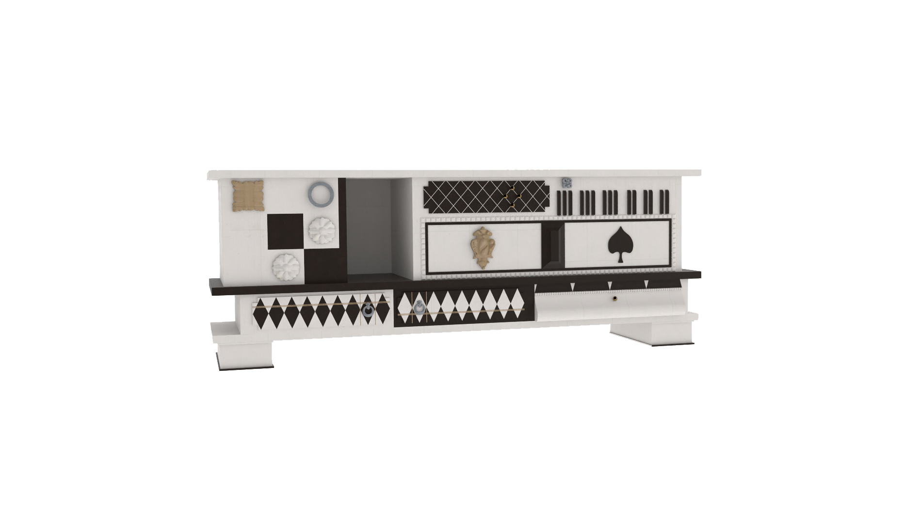 Откроем вам секрет: резные фигурки львов не были частью оригинального дизайна. Мы знали, что предмет мебели впечатляет, что выбор черного и белого оттеняет его в духе старого голливудского гламура, что клавиши пианино знакомят с большим оркестром, что ромбы соблазняют, как настоящие денди, что ансамбль сияет, как великая фигура немого кино. И все же мы были недовольны. Пока мы не вспомним Metro-Goldwyn-Meyer и его прославленный образ. И, добавив эти львиные головы, мы, наконец, почувствовали, что процесс завершен и готов к совместному использованию. Бесконечные возможности: выбирайте из разных вариантов отделки и играйте с размерами и особенностями интерьера.