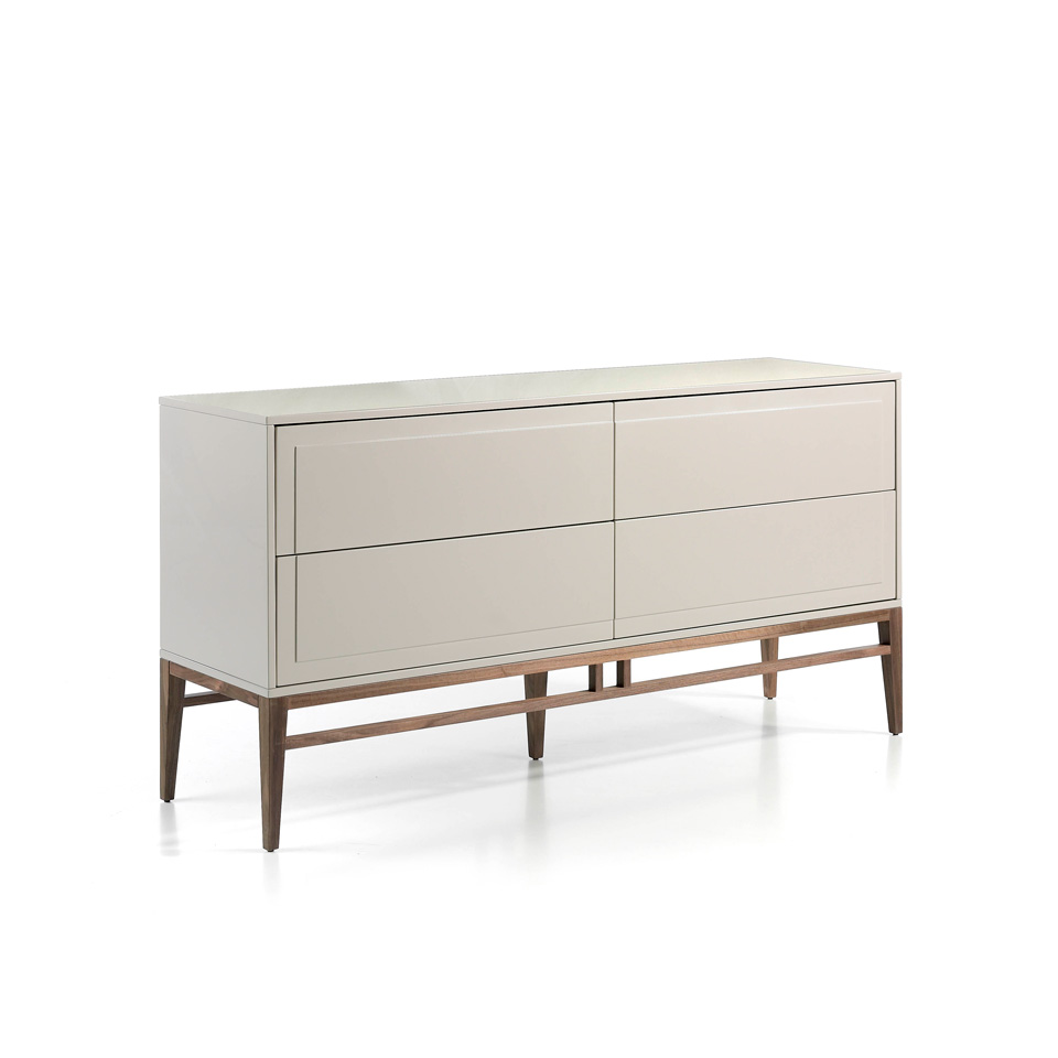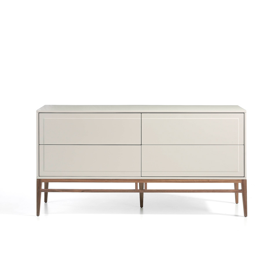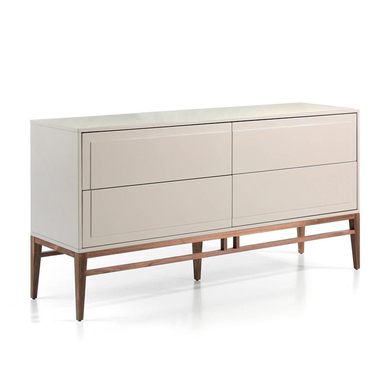 Запросить индивидуальное предложениеСервант CP1709-C от фабрики Angel Cerda — лаконичный и универсальный дизайн, созданный для европейских интерьеров. Сервант выглядит очаровательно и аккуратно. Стройные деревянные ножки делают изделие грациозным, а эргономичные вместительные ящики станут идеальным местом хранения для посуды, домашнего текстиля, прочих предметов быта. Модель легко впишется в современный интерьер, особенно если в нем ценят традиционное европейское исполнение. Сервант прямоугольной формы, с четырьмя выдвижными ящиками одинакового размера. Для удобной и надежной эксплуатации ящики оснащены прочными металлическими направляющими и доводчиками на открывание и закрывание. Каркас и ящики сделаны из белого шпона, а на фасадах — декор из лакированного МДФ. Опора сделана из орехового дерева. Для прочности и устойчивости к высоким весовым нагрузкам, конструкция имеет дополнительную ножку в центре основания, а также оснащена поперечными перекладинами спереди и сзади. На каждой ножке предусмотрен металлический наконечник. Цвета отделки указываются в соответствии с каталогом производителя. Допускается незначительное отклонение в цвете, обусловленное техническими особенностями цветопередачи фотографий.