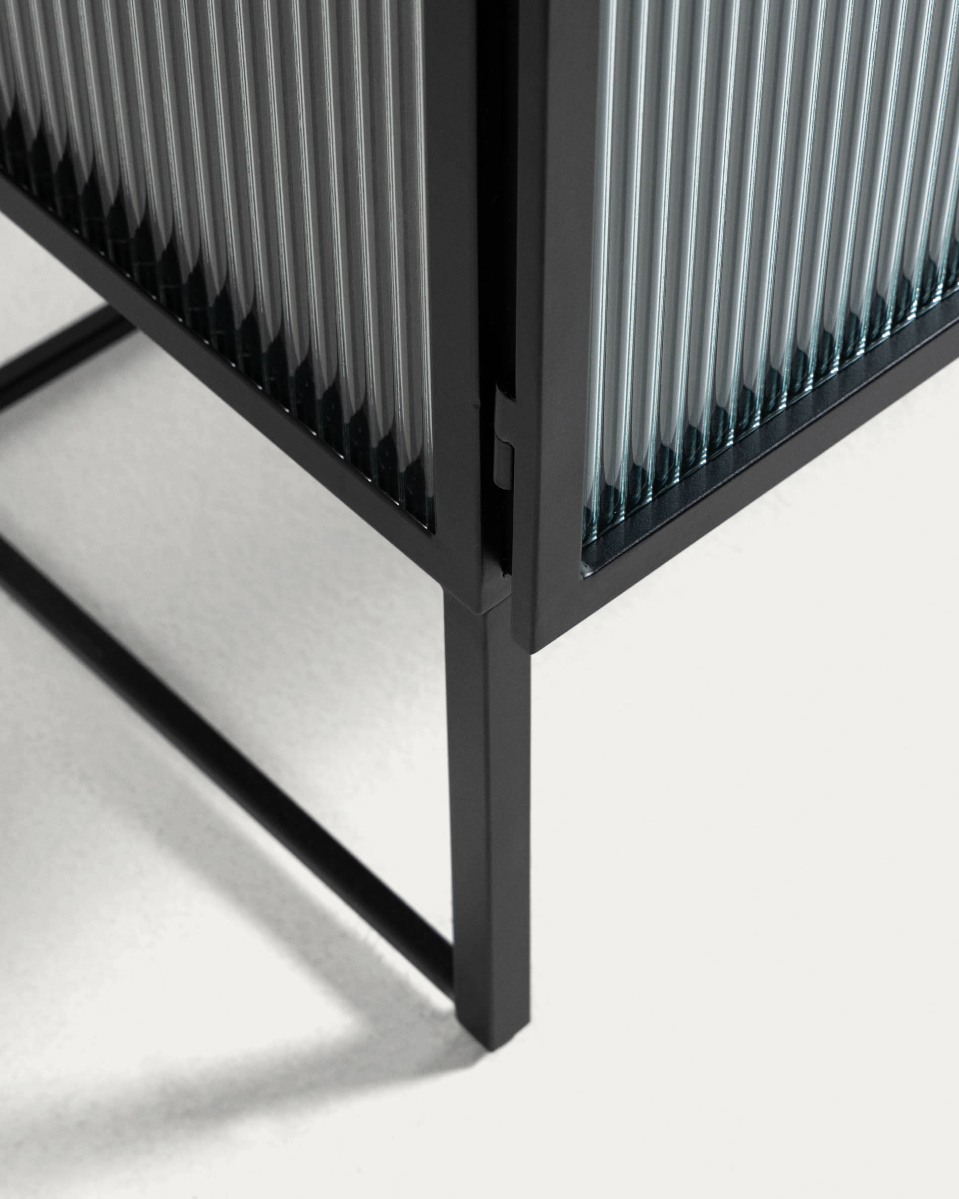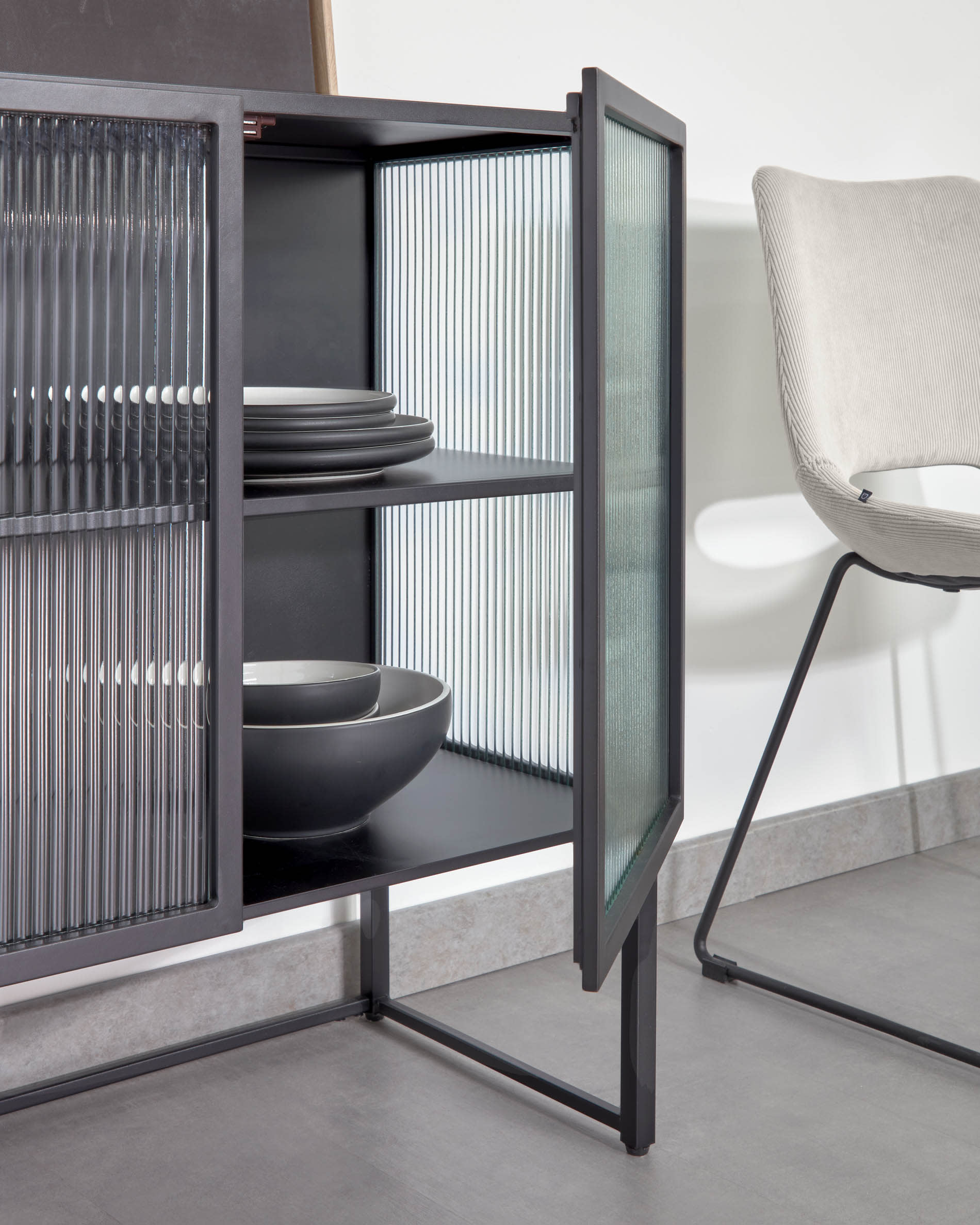 Запросить индивидуальное предложениеСервант Trixie от фабрики La Forma (ex Julia Grup) – приоритетный подход к стеклу, воплощенный в промышленном дизайне Сервант Trixie удивляет своим исполнением. Здесь текстурированное стекло создает невероятный визуальный эффект. В совмещении с минималистичным дизайном, этот предмет мебели непременно украсит ваш интерьер, и, при этом, не нарушит цветовой баланс. У вас не будет причин не любить сервант Trixie – он совершенно оригинальный и модный! Сервант имеет металлическую структуру, в которую вставлены фасады из закаленного текстурированное стекла. Стекло затемненное, ударопрочное, что делает изделие безопасным при эксплуатации. Каркас черного цвета, с матовым порошковым покрытием. Конструкция оснащена четырьмя распашными дверями без ручек (открываются нажатием) с мягкой системой закрытия на магнит. Основание имеет рамочную структуру, с квадратной формой ножек толщиной в 2 см. Высота ножек – 25 см. Снизу у них предусмотрены пластиковые накладки, которые защищают напольное покрытие от повреждений. Цвета отделки указываются в соответствии с каталогом производителя. Допускается незначительное отклонение в цвете, обусловленное техническими особенностями цветопередачи фотографий.
