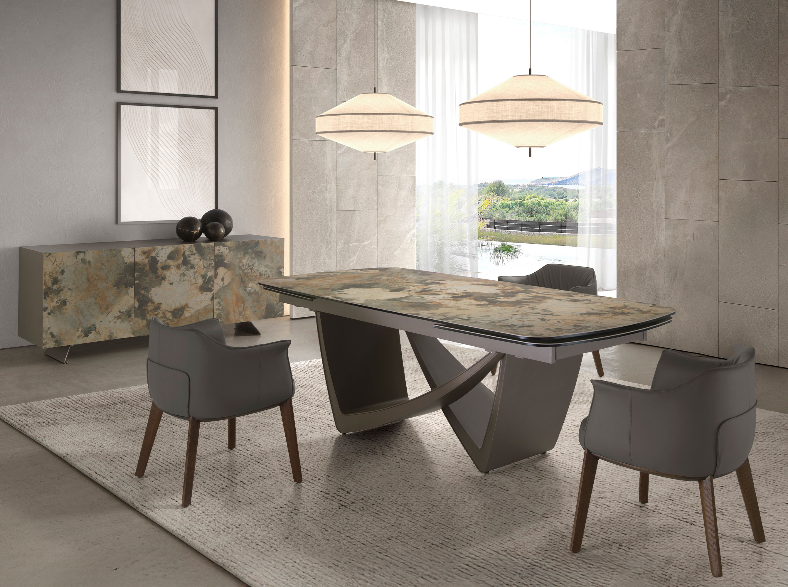 Запросить индивидуальное предложениеСовременный дизайн буфета с деревянной структурой из МДФ, лакированной в серо-коричневом металлическом цвете, и оригинальными ножками из нержавеющей стали, окрашенными в серо-коричневом металлическом цвете. Его оригинальные детали из фарфорового мрамора в земляных и серых тонах с матовой отделкой придают идеальный штрих стиля вашей гостиной. Он имеет большое пространство для хранения с 4 дверцами с ручным выемом для пальцев и системой плавного закрывания. Цвета отделки указываются в соответствии с каталогом производителя. Допускается незначительное отклонение в цвете, обусловленное техническими особенностями цветопередачи фотографий.