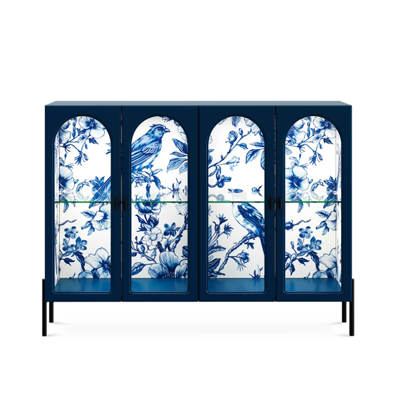 Запросить индивидуальное предложениеBanksy — коллекция оригинальных шкафов-витрин и сервантов с художественными акцентами. В основе дизайна — дань классическим формам и стремление к актуальным тенденциям. Внушительный корпус балансирует на изящных ножках из металла. Что делает габаритные формы визуально легкими. Также за воздушность отвечают дверцы и полки из стекла. Вместе с внутренней подсветкой они обеспечивают «выставочное» хранение книг, посуды, косметики, декора и других предметов. Изображения в духе шинуазри являются колоритными элементами интерьера. Они моментально притягивают взгляд и становятся фокусной точкой, привнося в пространство разнообразие, таинственность, дух приключений. С помощью Banksy вы поддержите комфорт и индивидуальность как домашних локаций: гостиной, спальни, гардеробной, обеденной группы, так и бизнес-пространств: кафе, студий, салонов, шоурумов.