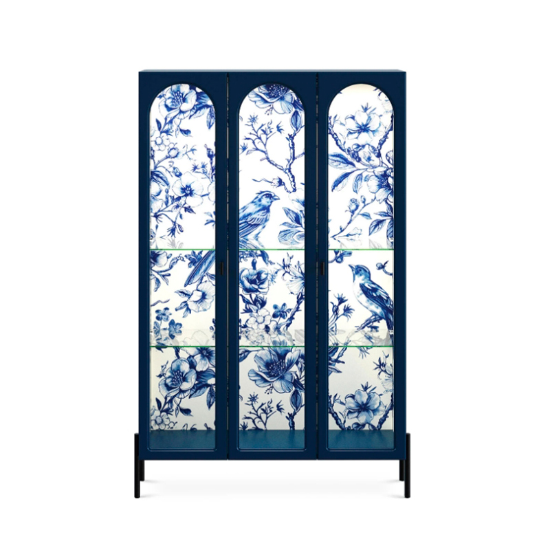 Запросить индивидуальное предложениеBanksy — коллекция оригинальных шкафов-витрин и сервантов с художественными акцентами. В основе дизайна — дань классическим формам и стремление к актуальным тенденциям. Внушительный корпус балансирует на изящных ножках из металла. Что делает габаритные формы визуально легкими. Также за воздушность отвечают дверцы и полки из стекла. Вместе с внутренней подсветкой они обеспечивают «выставочное» хранение книг, посуды, косметики, декора и других предметов. Изображения в духе шинуазри являются колоритными элементами интерьера. Они моментально притягивают взгляд и становятся фокусной точкой, привнося в пространство разнообразие, таинственность, дух приключений. С помощью Banksy вы поддержите комфорт и индивидуальность как домашних локаций: гостиной, спальни, гардеробной, обеденной группы, так и бизнес-пространств: кафе, студий, салонов, шоурумов.