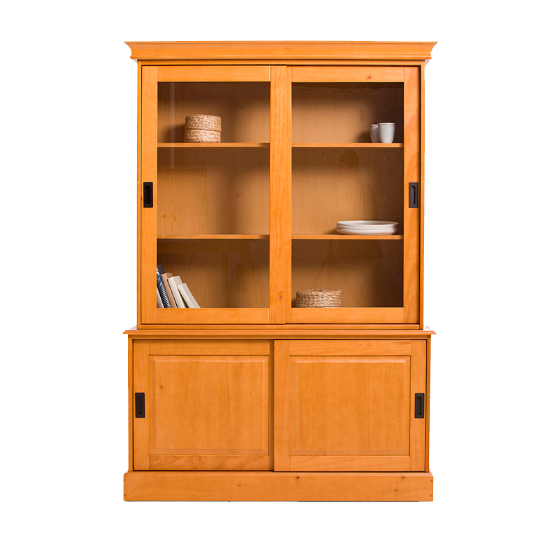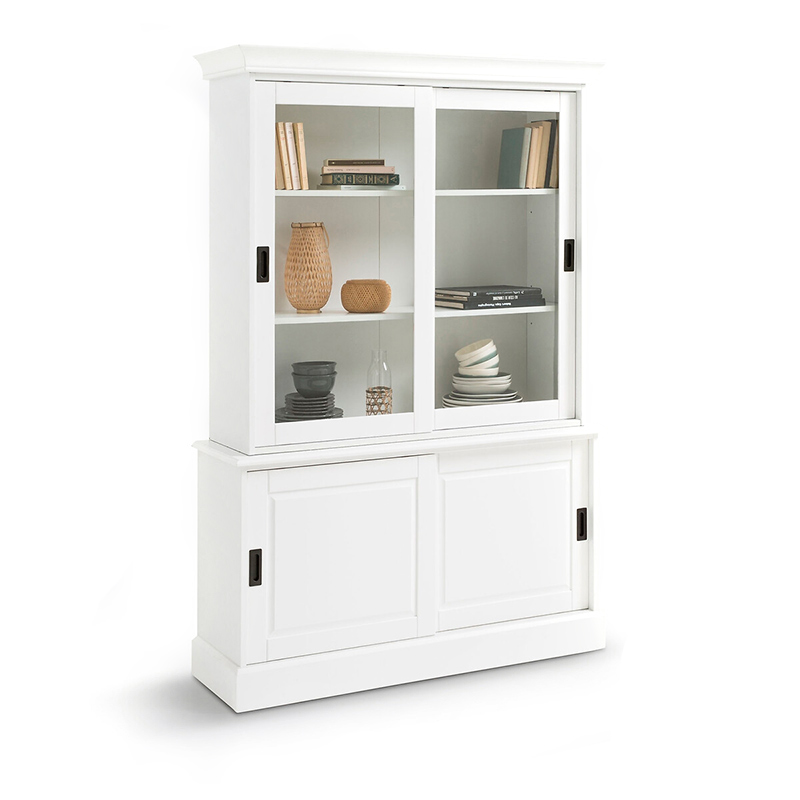 • Верхняя часть: 2 раздвижные застекленные дверцы с закаленным стеклом, 2 регулируемые по высоте полки