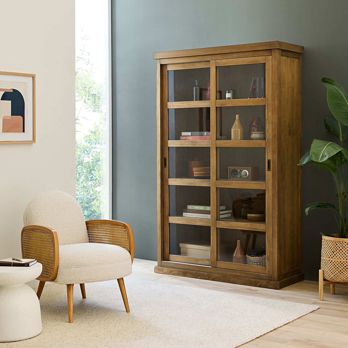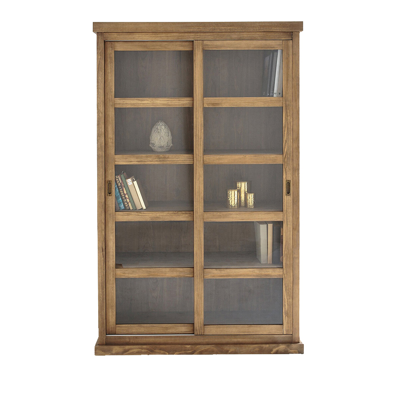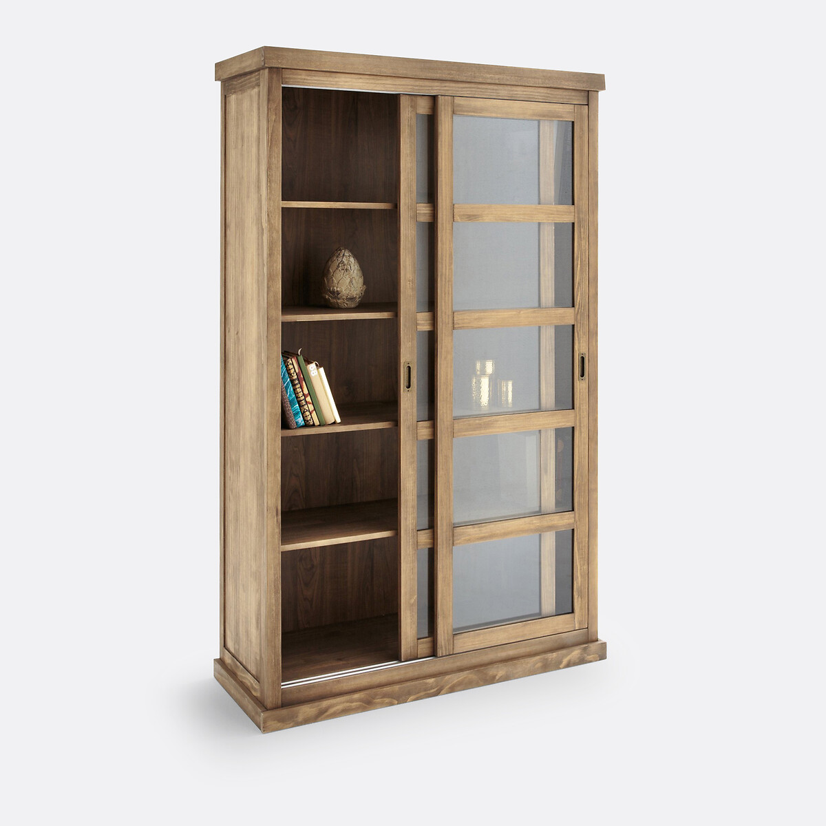 Шкаф-витрина книжный с 2 раздвижными дверцами Lunja коричневый