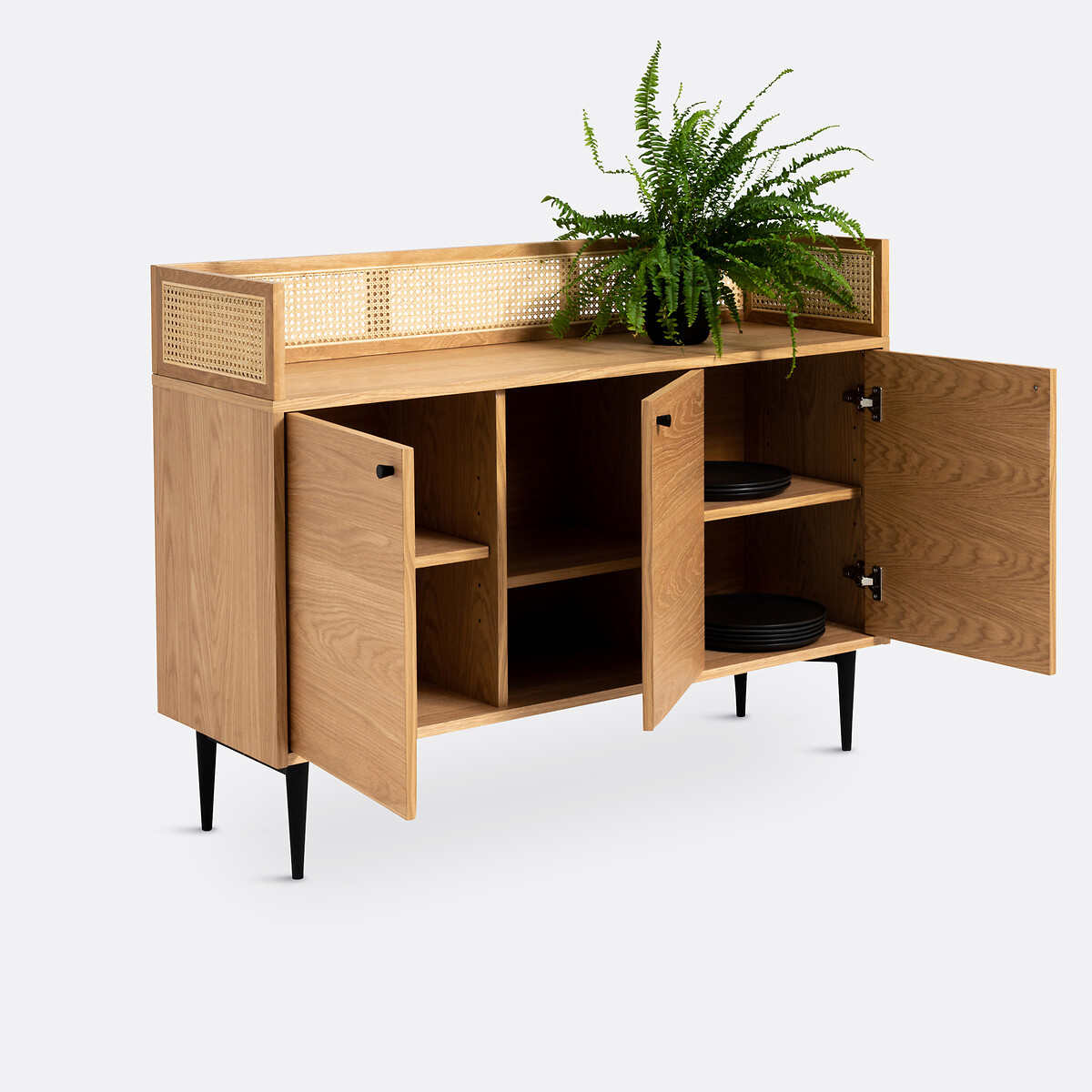 Буфет из массива дуба и плетеного ротанга Noya единый размер бежевый