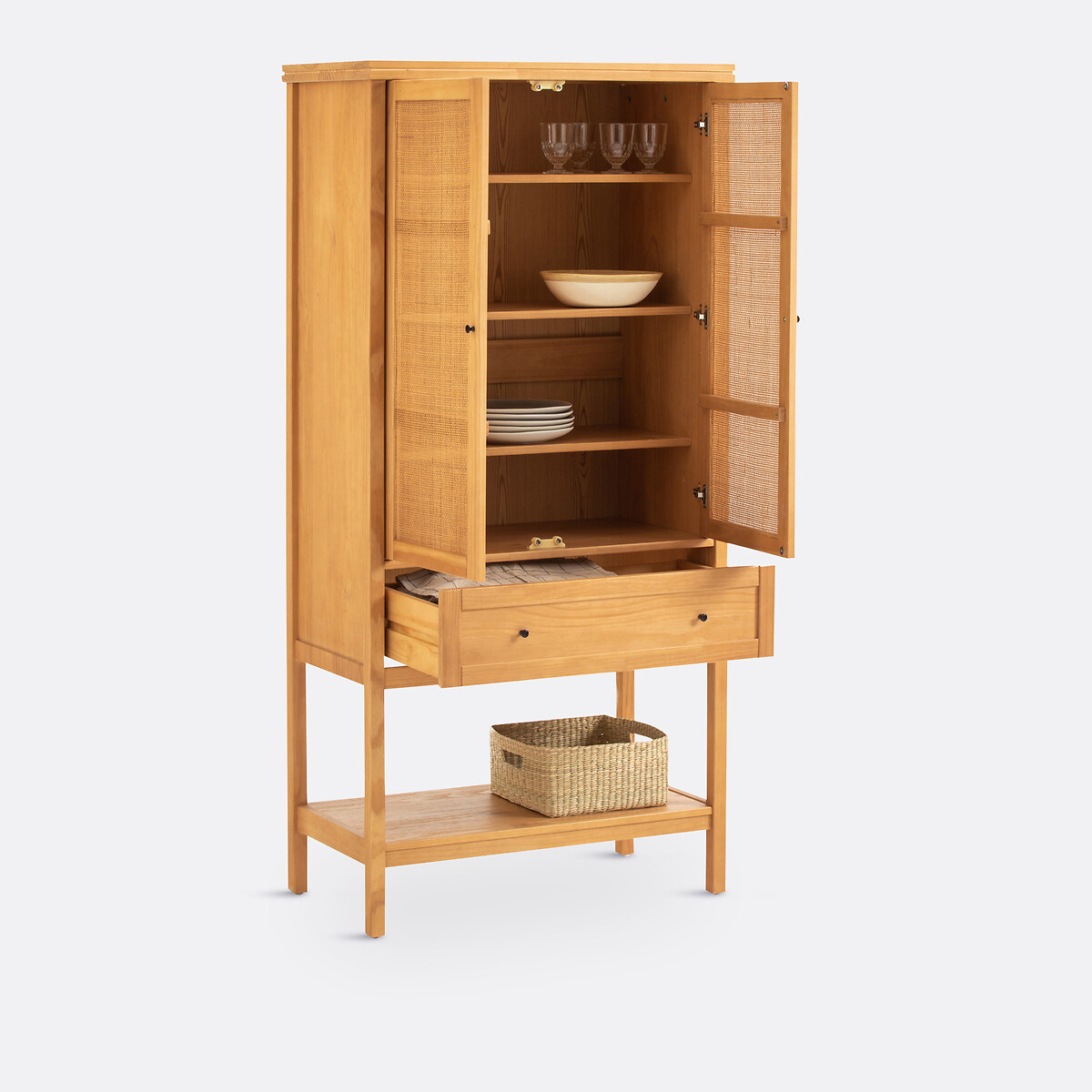 • 2 плетеные дверки, 3 съемные и регулируемые полки в 3-х положениях