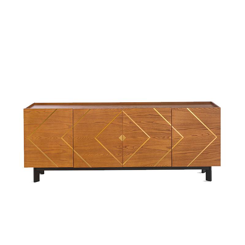 • Декоративная вставка из стали с отделкой под латунь на фасаде.