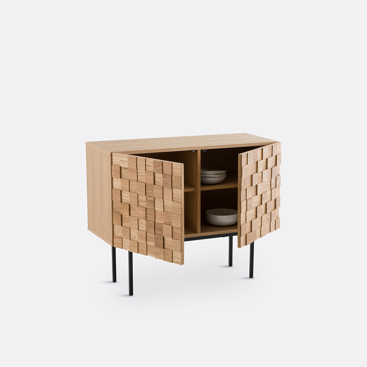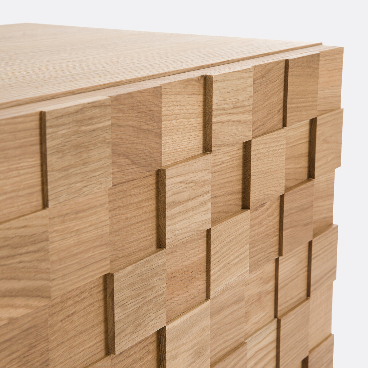 • Дверки из ДСП с шахматным узором: деревянные квадраты из массива дуба разной толщины (15/20/25 мм)