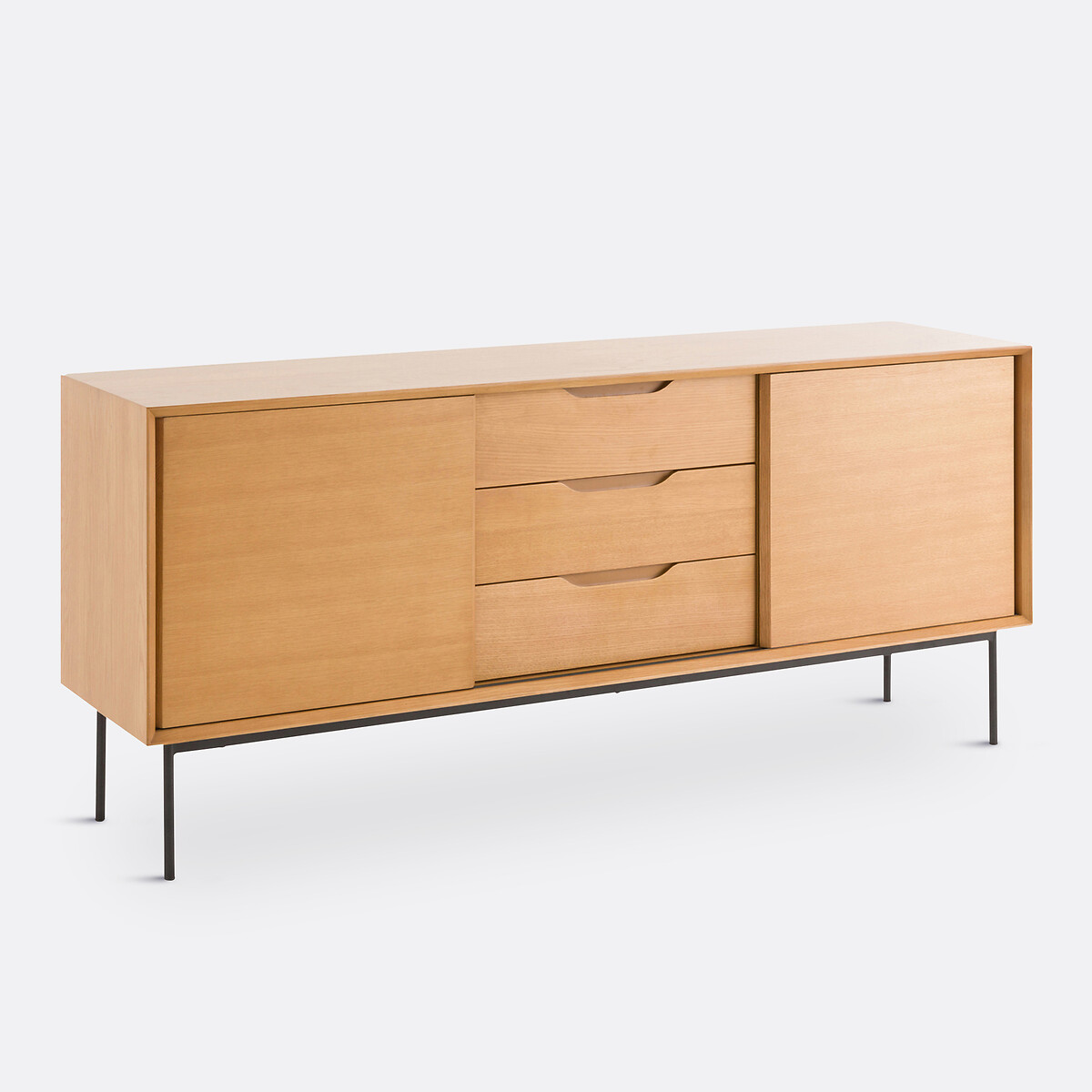 • 2 раздвижные дверцы на черных алюминиевых направляющих, 1 съемная и регулируемая полка за каждой дверцей