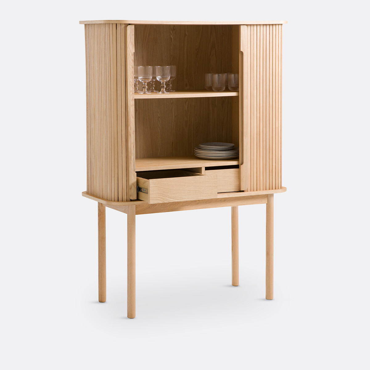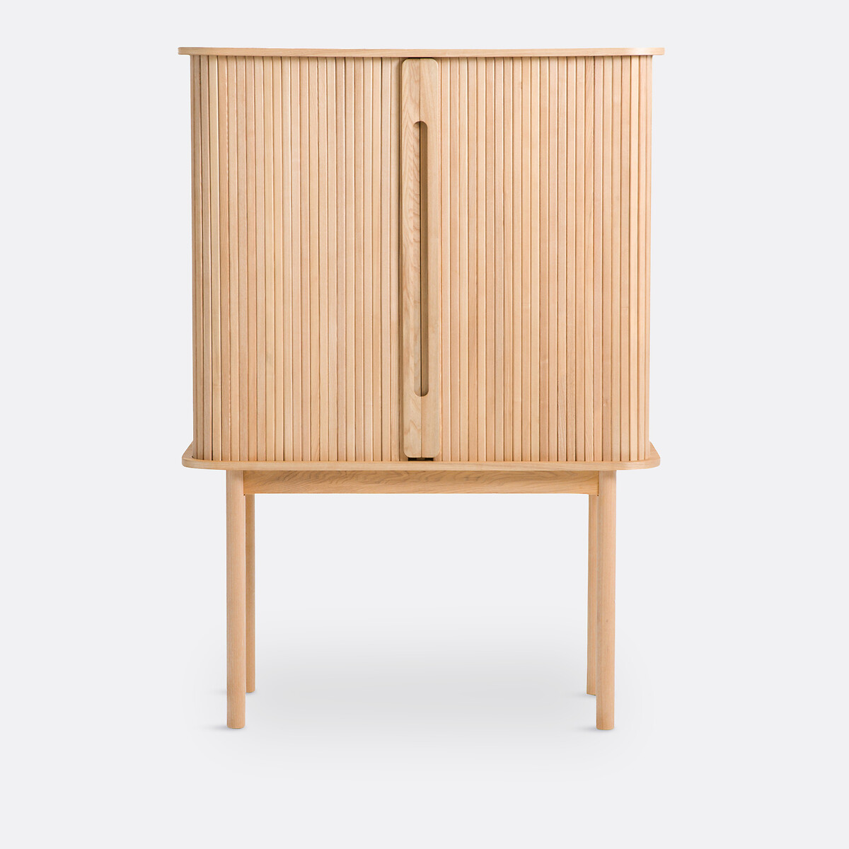 Запросить индивидуальное предложение • Две раздвижные дверцы со шторкой из массива ясеня FSC® с НЦ-лакировкой