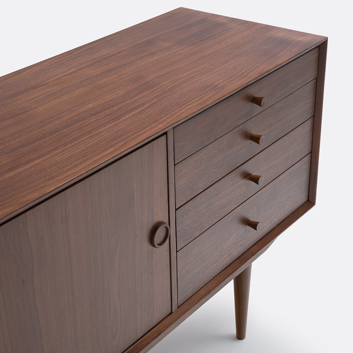 Запросить индивидуальное предложение • Каркас, дверцы и ящики из орехового дерева и МДФ, шпонированной ореховым деревом