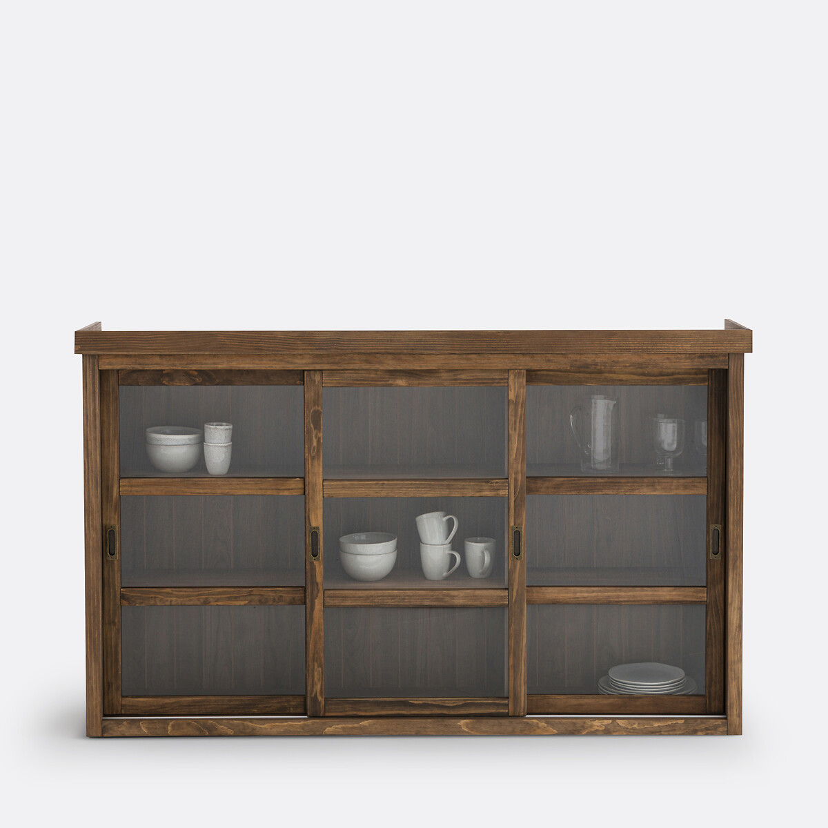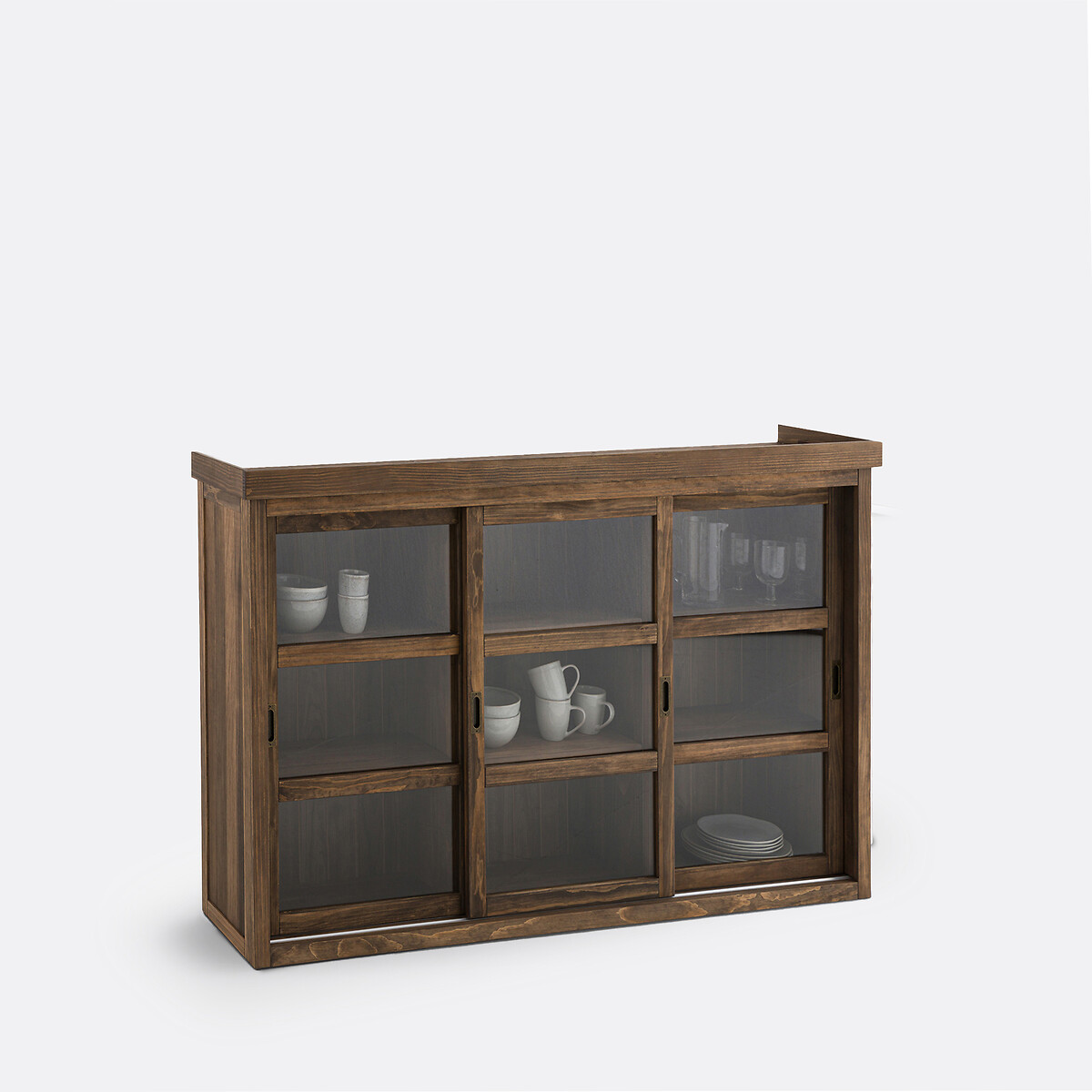 Шкаф для посуды с тремя остекленными дверцами из массива сосны Lunja