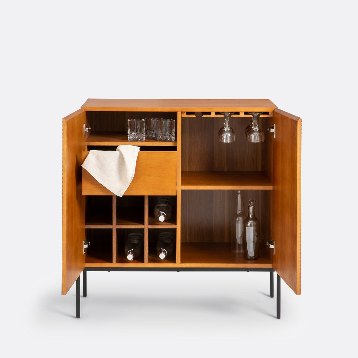 • Правая часть: 2 ниши + перекладина из дерева для размещения бокалов на ножке