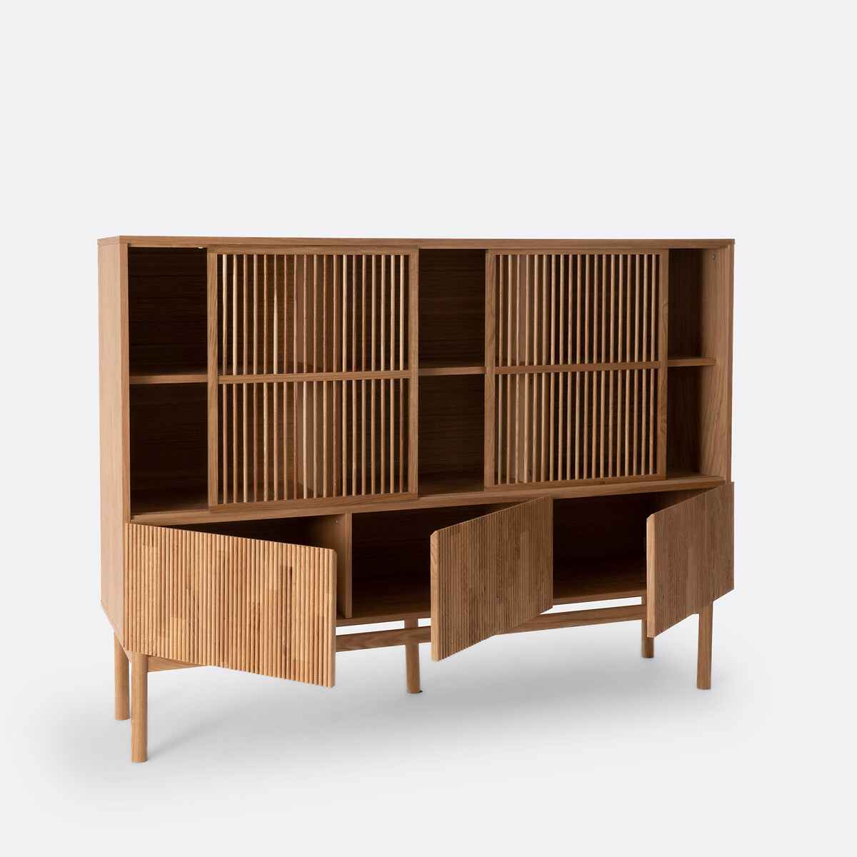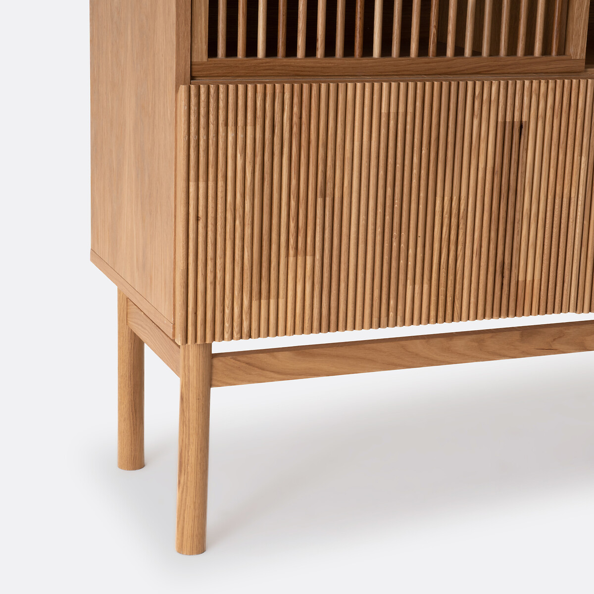 • 3 дверцы с полукруглыми желобками из массива дуба
