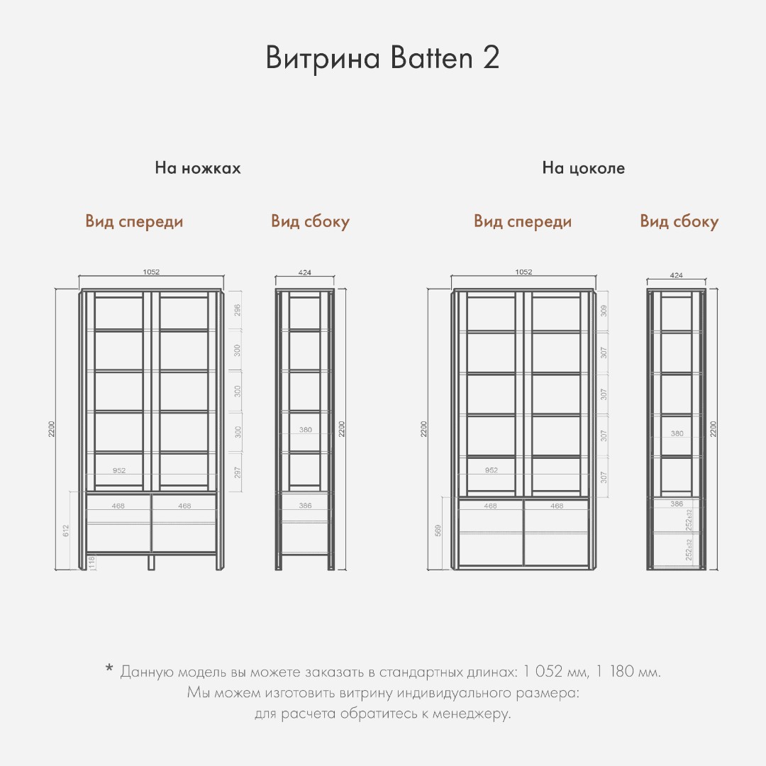 Витрина может быть выполнена в нескольких вариантах длины корпуса, а также с гладким или рифленым стеклом.  Также мы можем изготовить предмет по вашим индивидуальным размерам. В таком случае стоимость предмета рассчитывается индивидуально.