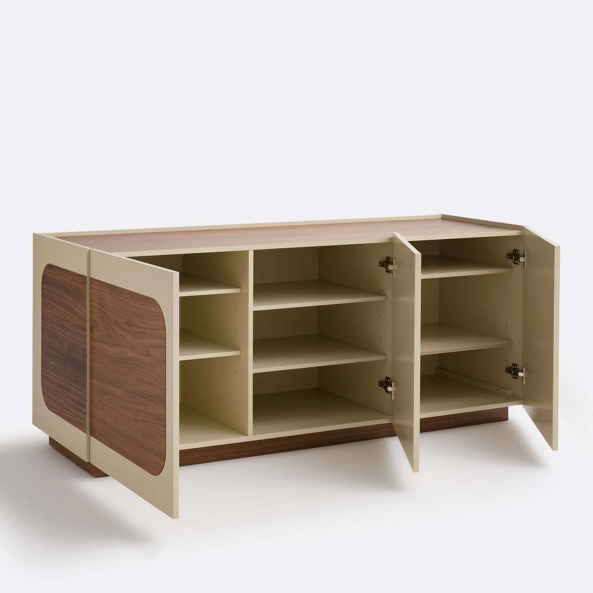 Запросить индивидуальное предложение• МДФ, шпонированная ореховым деревом + окрашенная МДФ, НЦ-покрытие