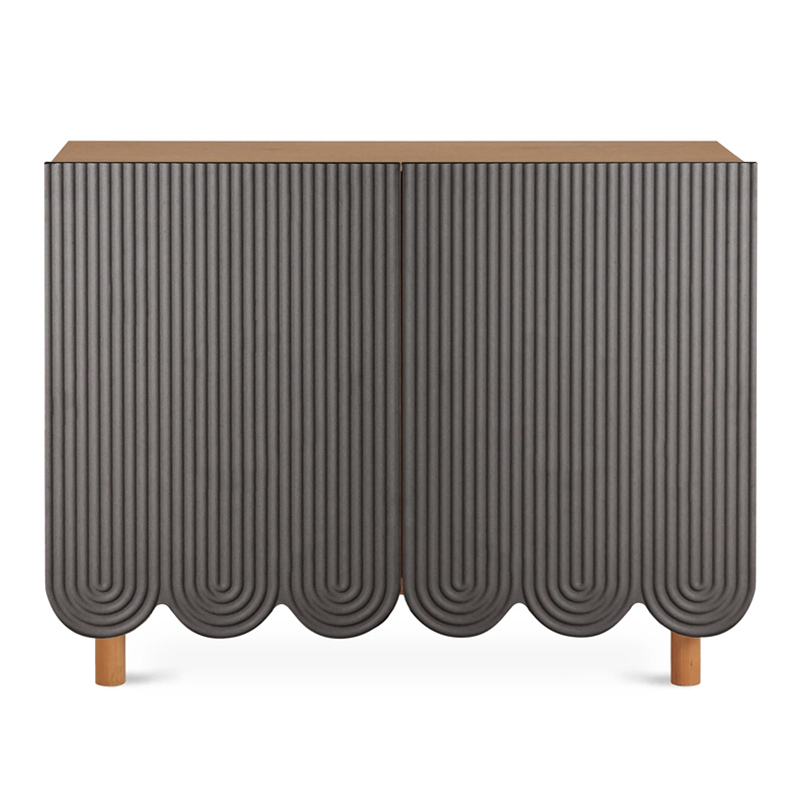 Компактные круглые ножки из бука невысоко приподнимают над полом корпус серванта. Что обеспечивает лёгкость восприятия и воздушность модели. А также простоту уборки. За дверцами скрываются 4 отсека для хранения разных предметов от техники до косметики. Сервант Mira можно использовать в качестве ТВ-консоли в гостиной, найдётся ему местечко и в спальне, рабочей или обеденной зоне. Можно дополнить органайзерами для хранения украшений, аксессуаров. Цвет фасадов может быть ярким, например, терракотовым, графитовым, или нейтральным: белым, бежевым. В любом варианте сервант Mira станет эффектным акцентом интерьера.