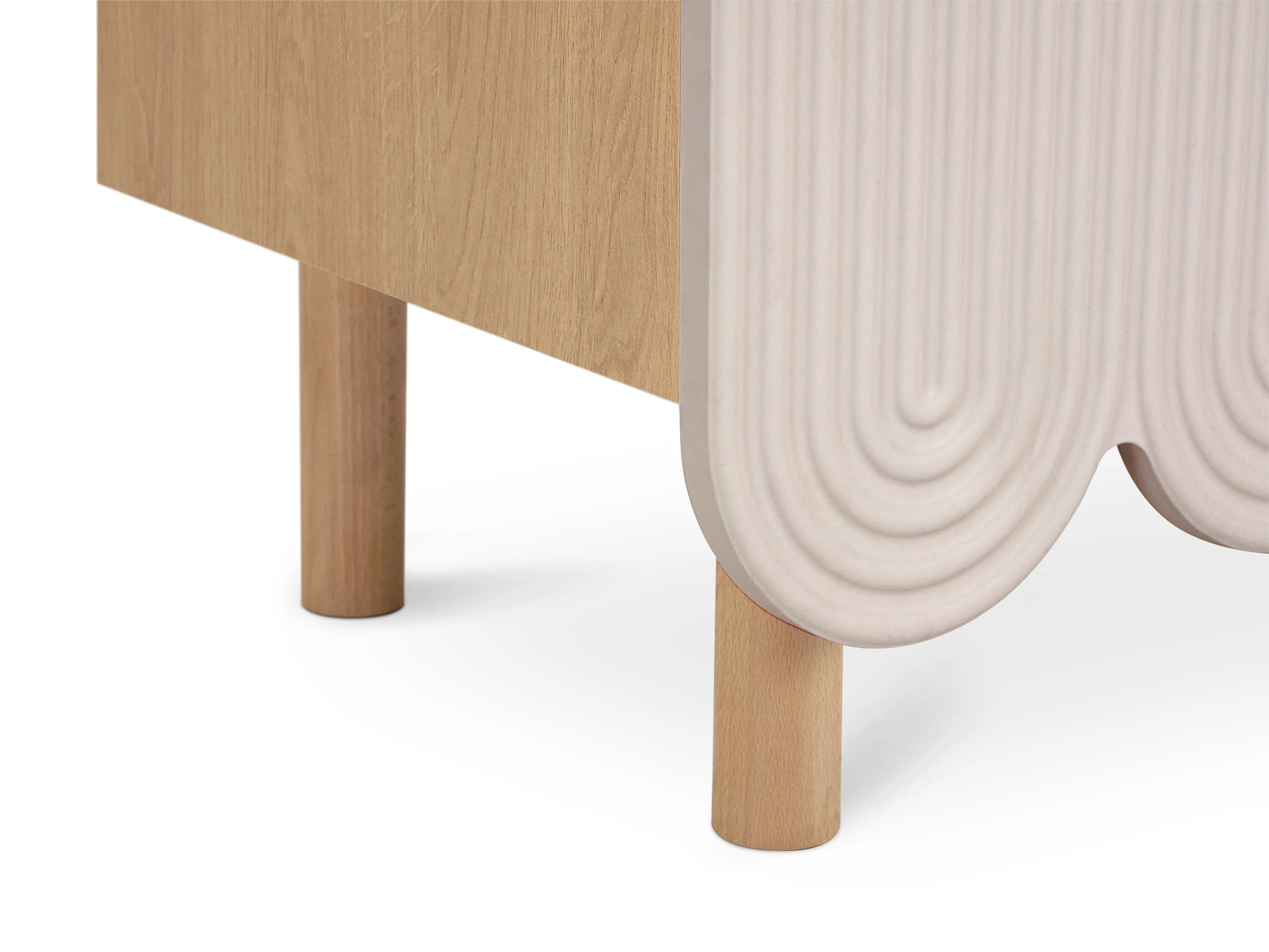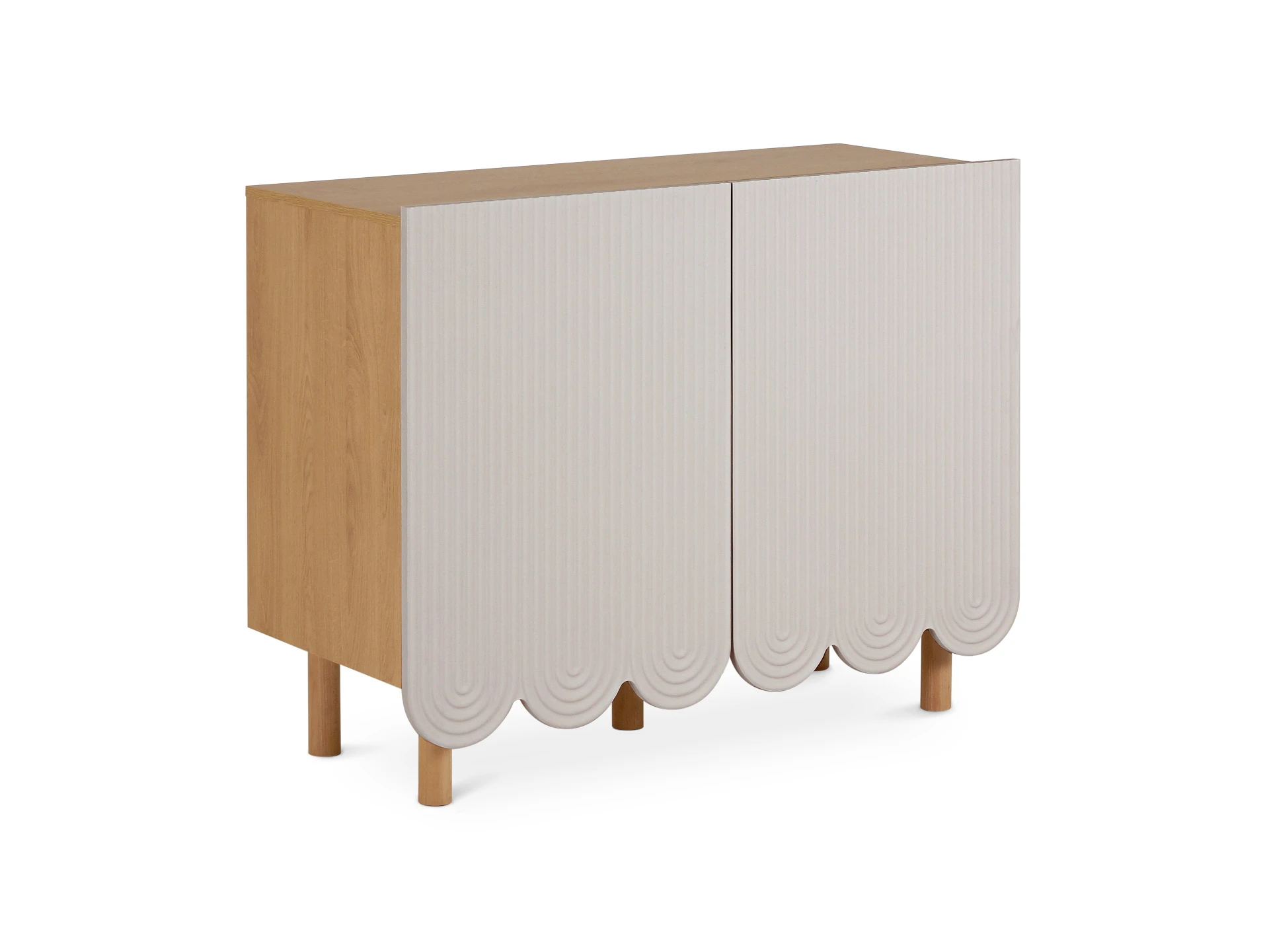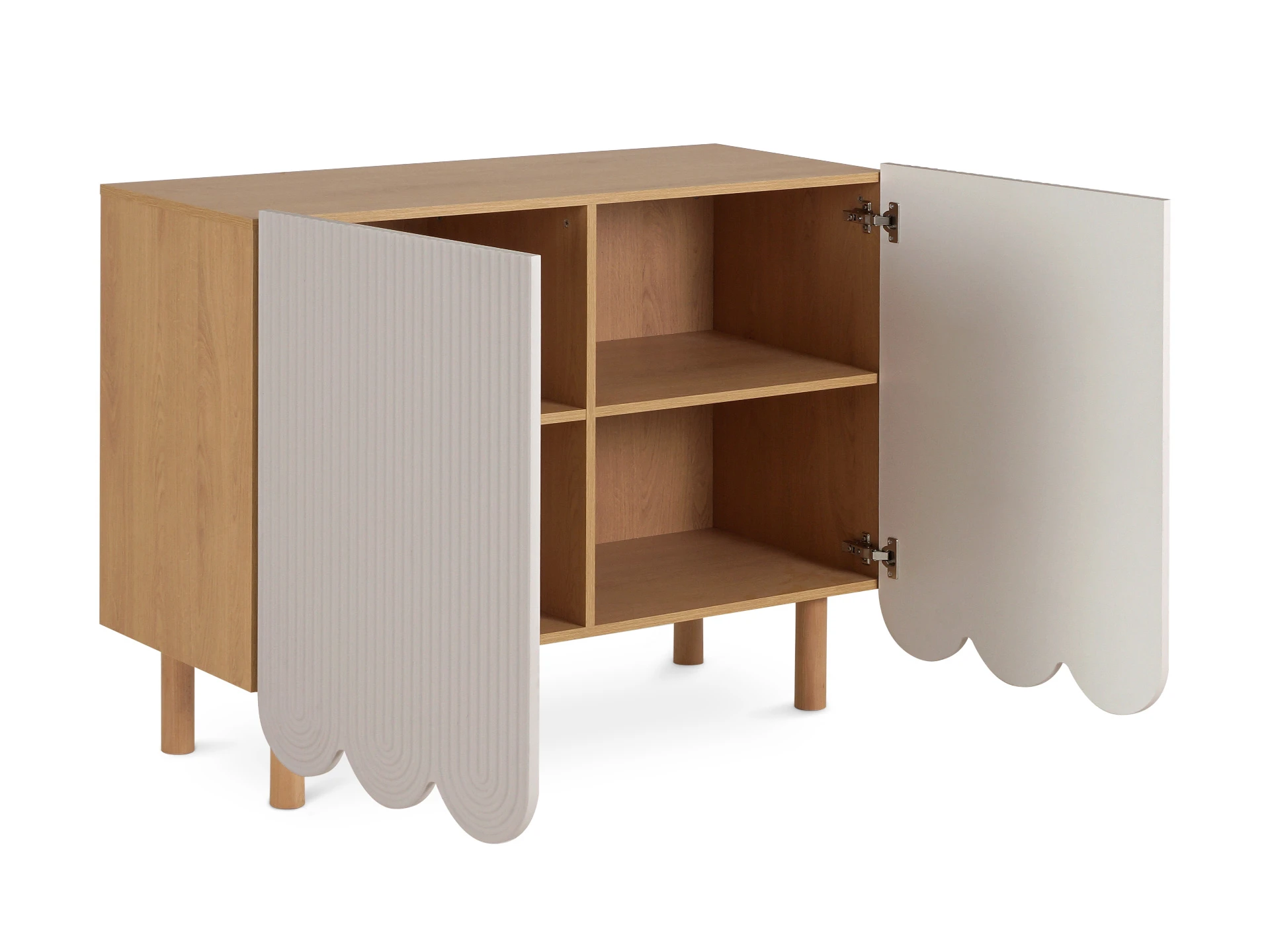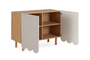 Компактные круглые ножки из бука невысоко приподнимают над полом корпус серванта. Что обеспечивает лёгкость восприятия и воздушность модели. А также простоту уборки. За дверцами скрываются 4 отсека для хранения разных предметов от техники до косметики. Сервант Mira можно использовать в качестве ТВ-консоли в гостиной, найдётся ему местечко и в спальне, рабочей или обеденной зоне. Можно дополнить органайзерами для хранения украшений, аксессуаров. Цвет фасадов может быть ярким, например, терракотовым, графитовым, или нейтральным: белым, бежевым. В любом варианте сервант Mira станет эффектным акцентом интерьера.