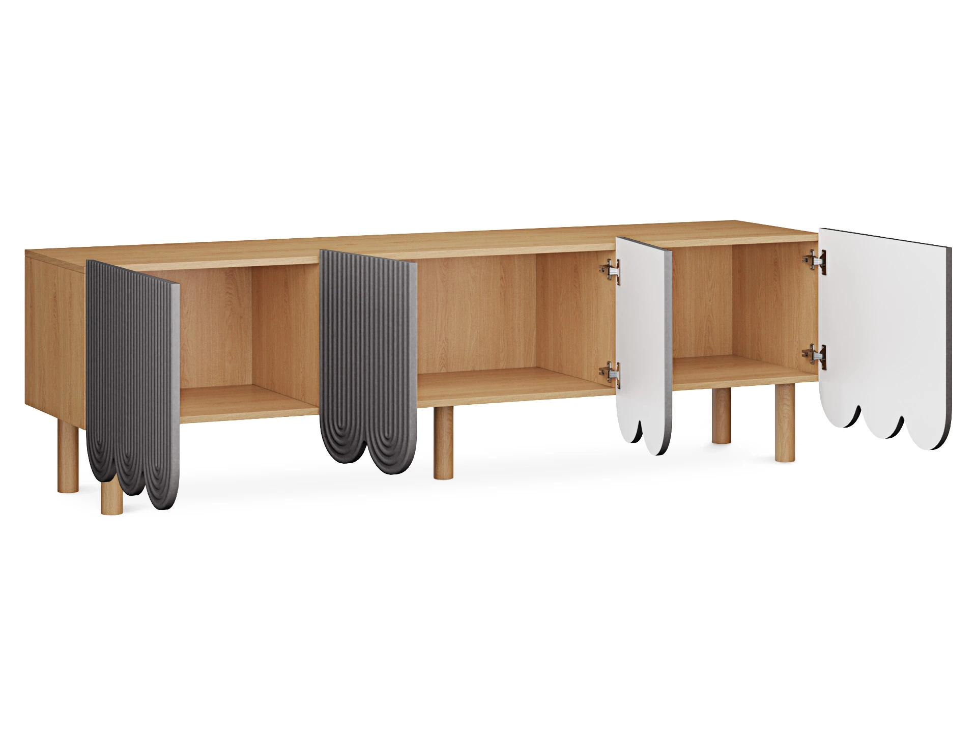 Компактные круглые ножки из бука невысоко приподнимают над полом корпус серванта. Что обеспечивает лёгкость восприятия и воздушность модели. А также простоту уборки. За дверцами скрываются 3 отсека для хранения разных предметов от техники до косметики. Сервант Mira можно использовать в качестве ТВ-консоли в гостиной, найдётся ему местечко и в спальне, рабочей или обеденной зоне. Можно дополнить органайзерами для хранения украшений, аксессуаров. Цвет фасадов может быть ярким, например, терракотовым, графитовым, или нейтральным: белым, бежевым. В любом варианте сервант Mira станет эффектным акцентом интерьера.