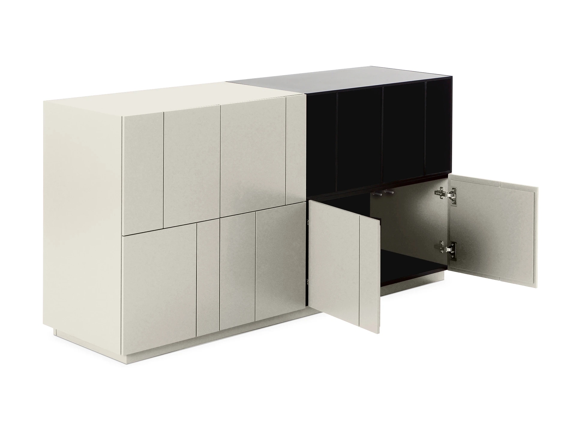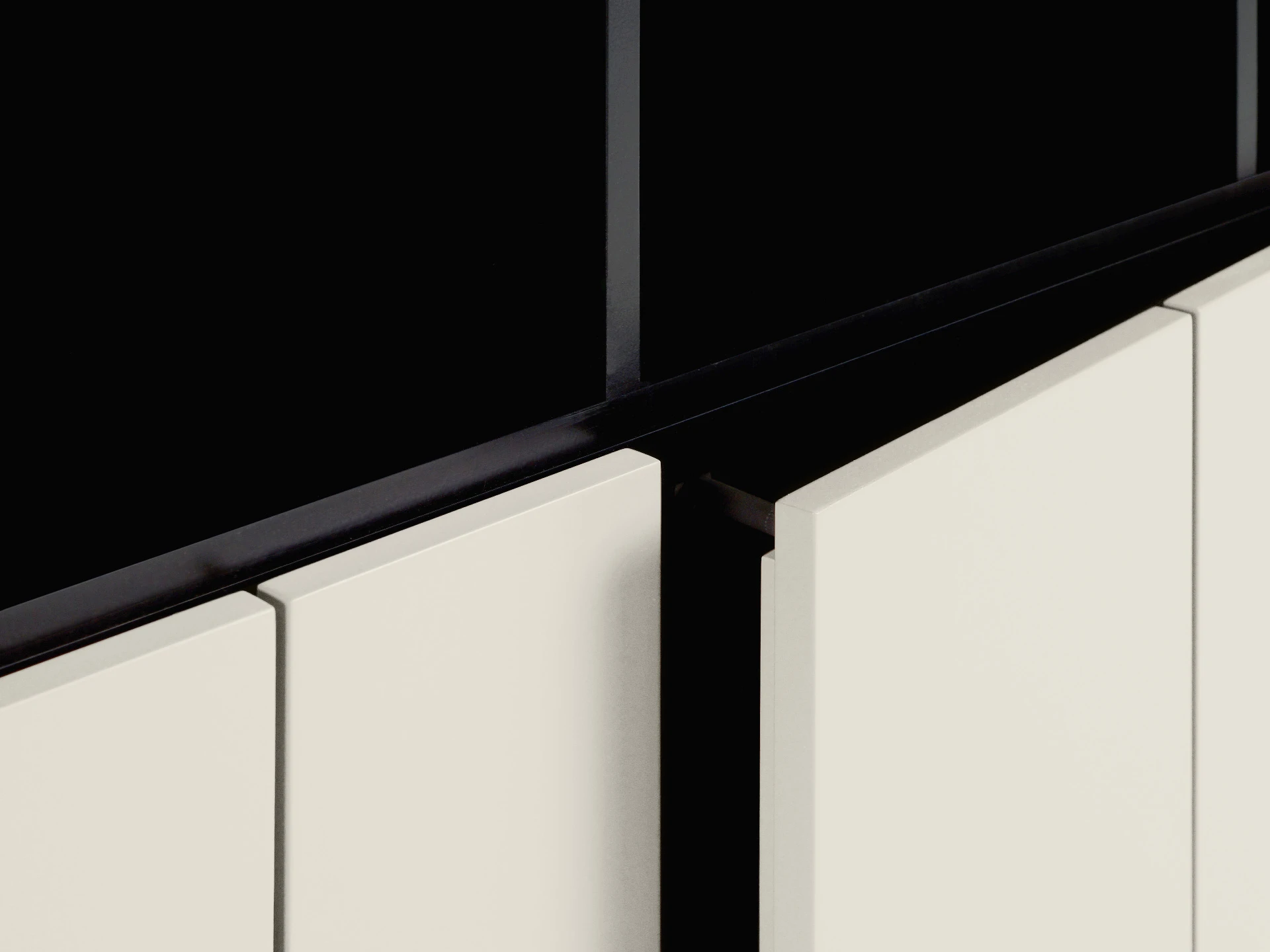 Сервант установлен на регулируемые опоры. Задняя стенка выполнена также из окрашенной МДФ.